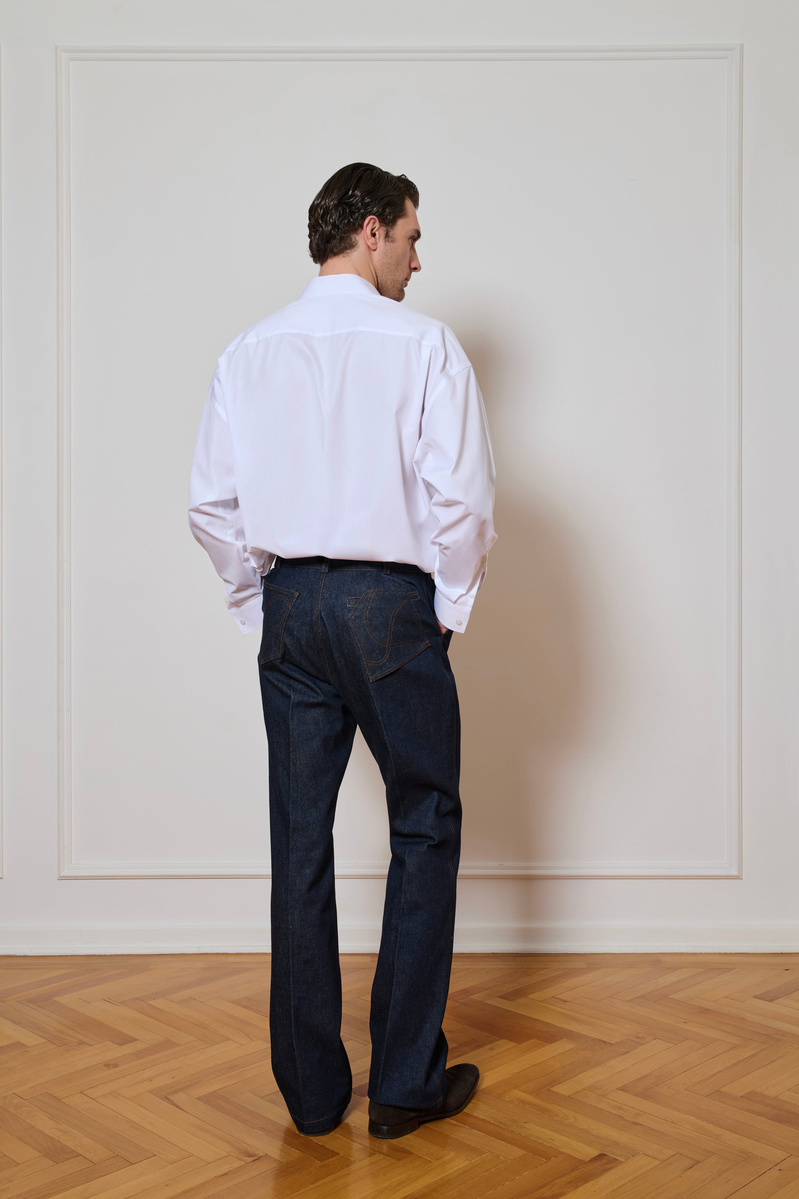 قميص واسع مصنوع من قماش قطني ناعم، يتميز بجيب كبير على الصدر وتطريز يدوي على شكل قلب أحمر. مصمم بقصة مريحة، وأزرار أمامية، وأكمام طويلة، وأساور كلاسيكية لإطلالة أنيقة وجذابة.