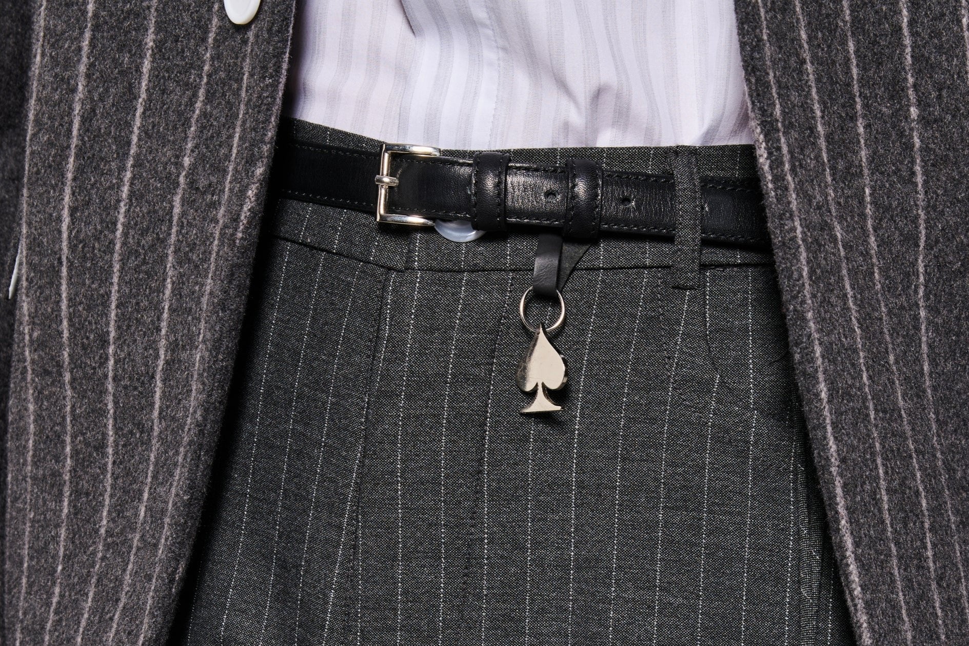 حزام من جلد العجل، مزين بعلامة المجرفة المعدنية الخاصة بنا.