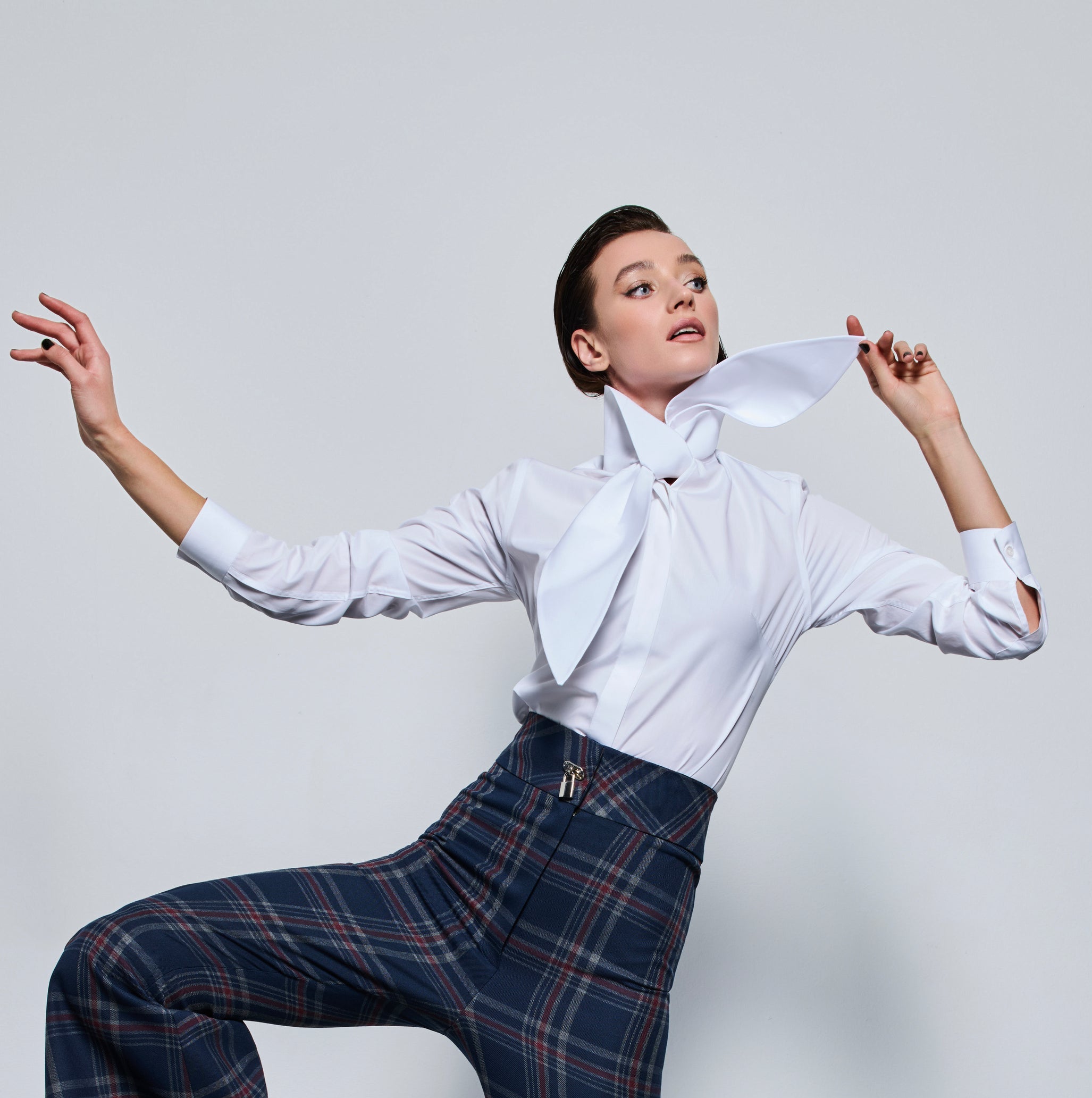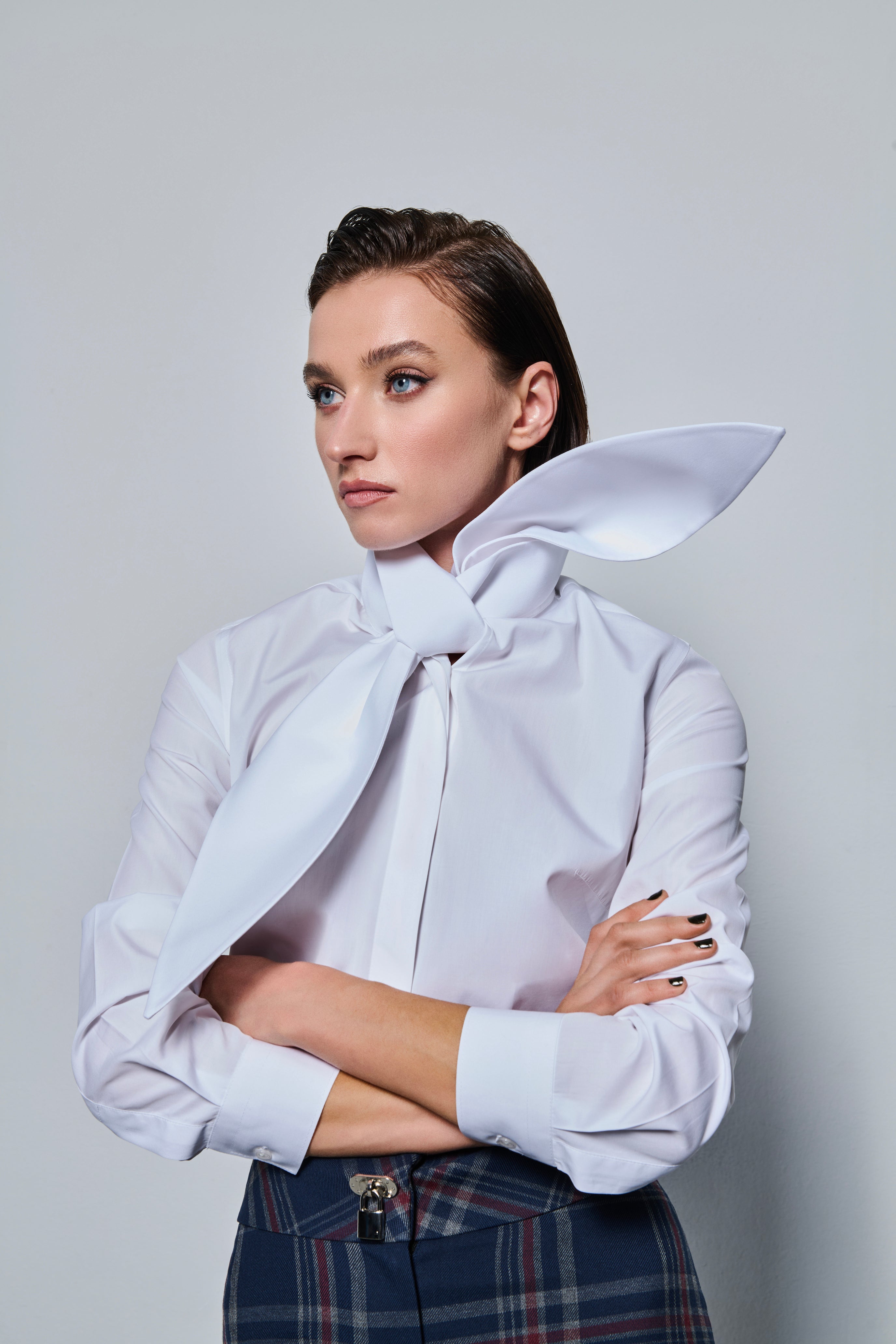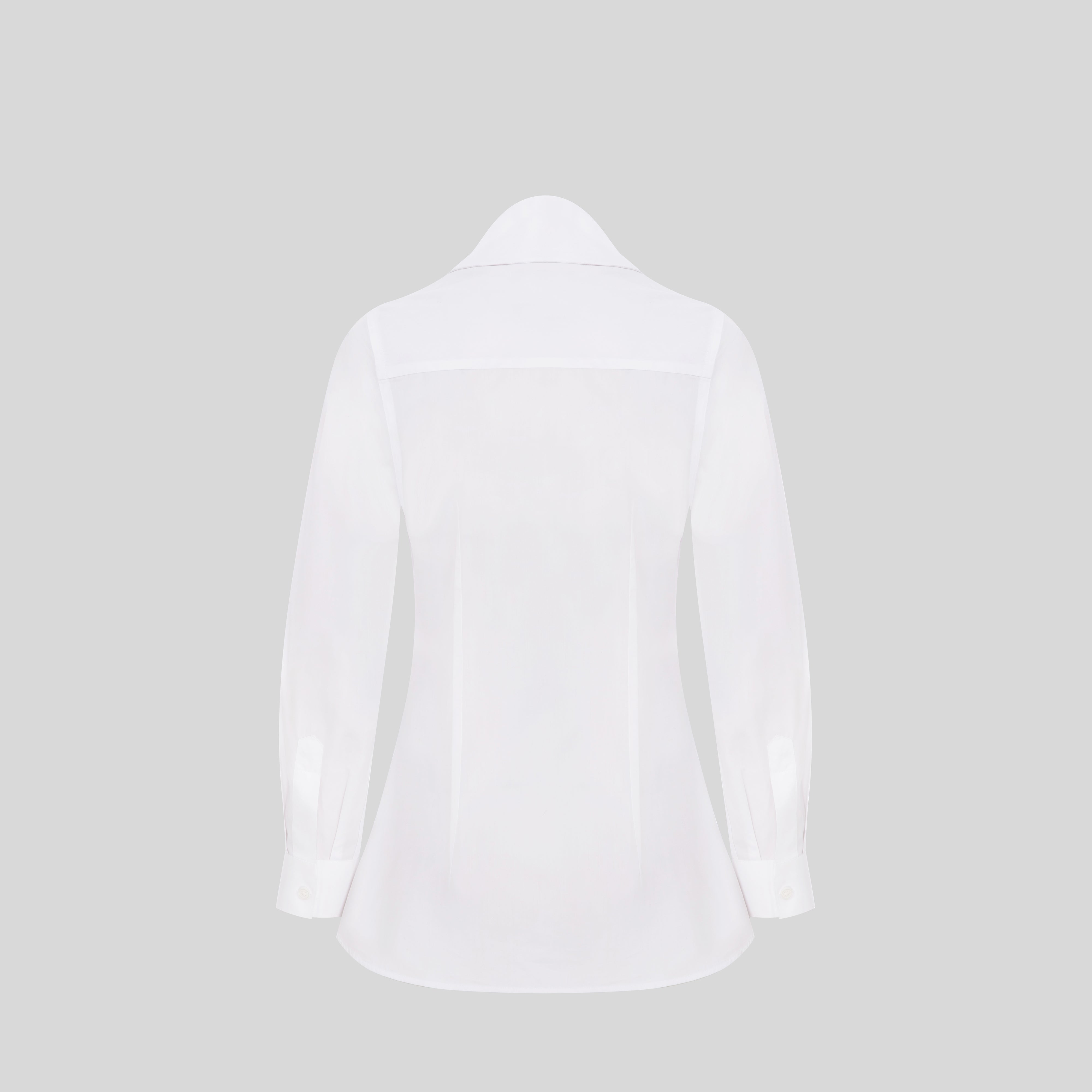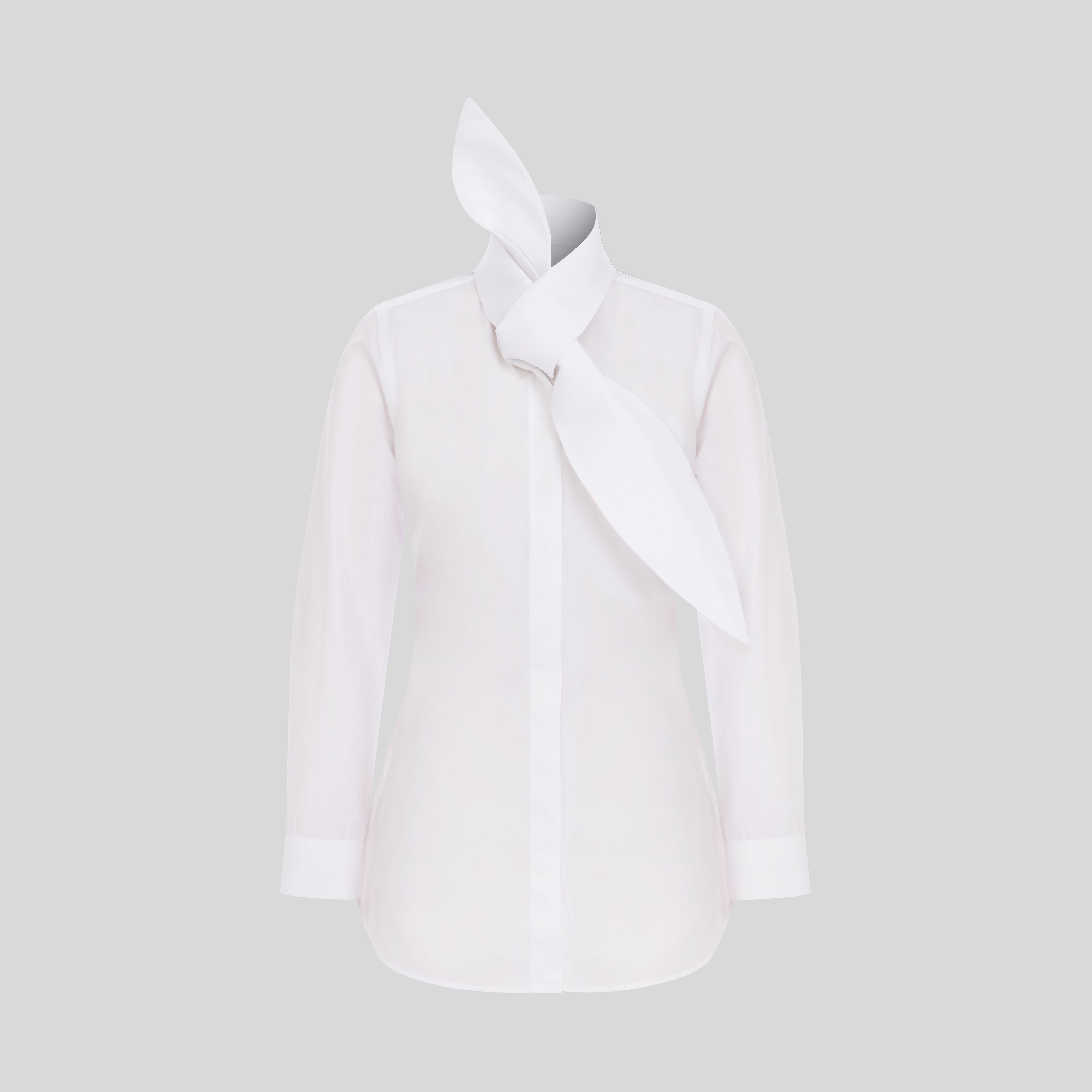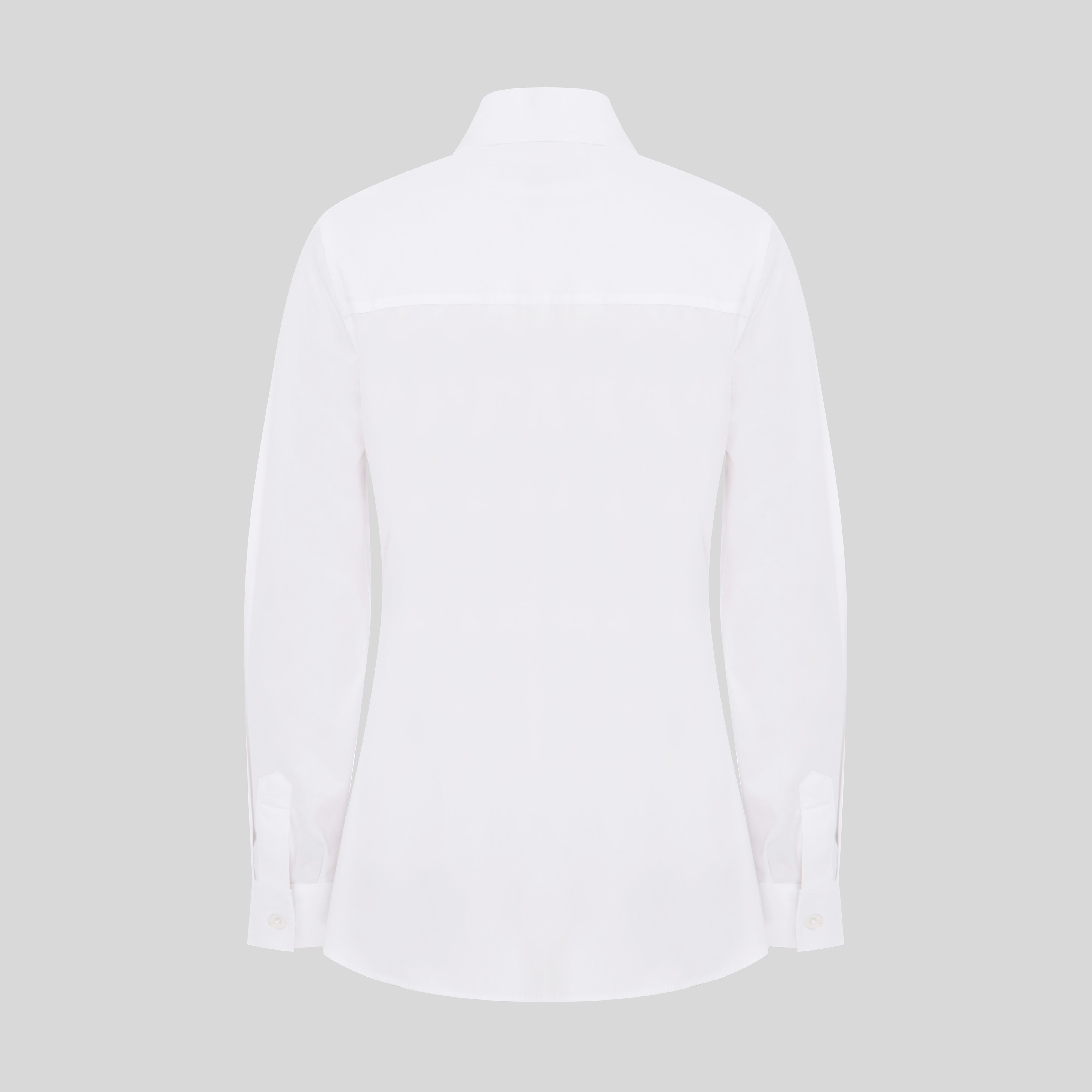 Standard fit white poplin shirt made with 100 % cotton fabric with an elongated fabric nod.