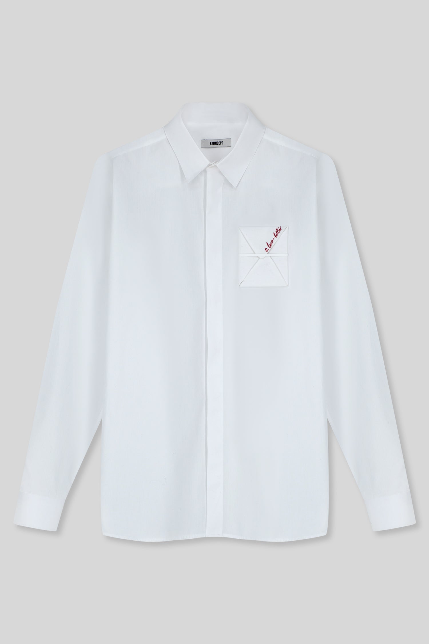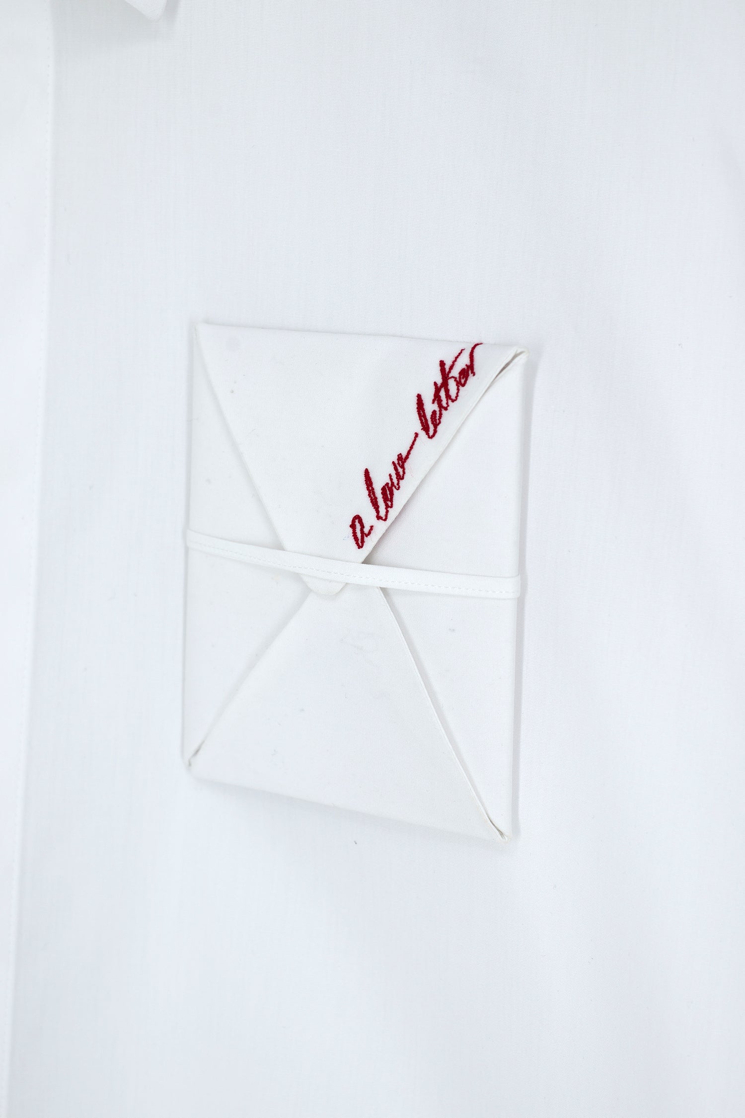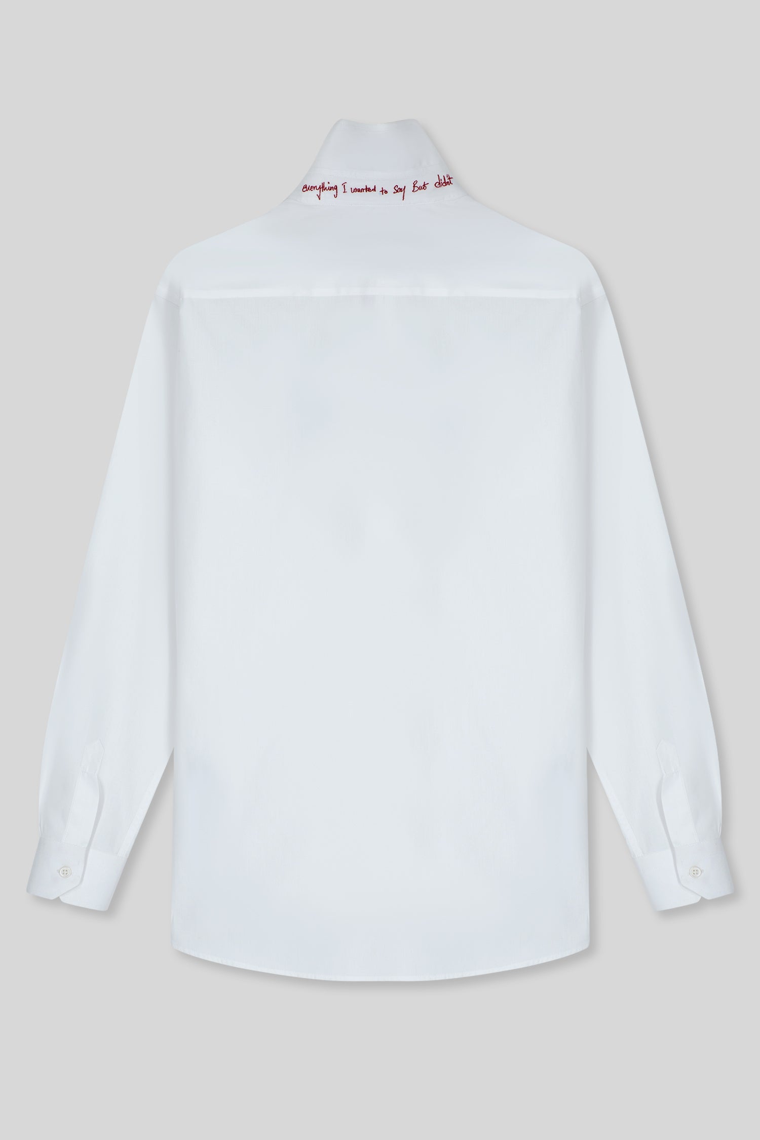 Finely tailored Poplin standard fit shirt, embedded with an envelop shaped pocket on the chest and a hidden red embroidery "Everything İ wanted to say but didn't." beneath the collar.