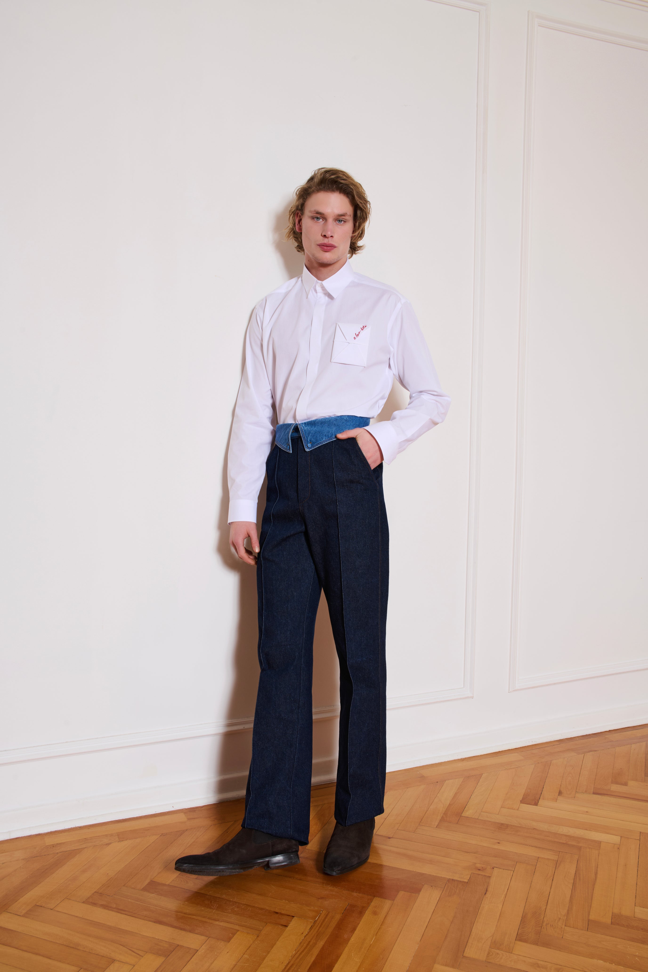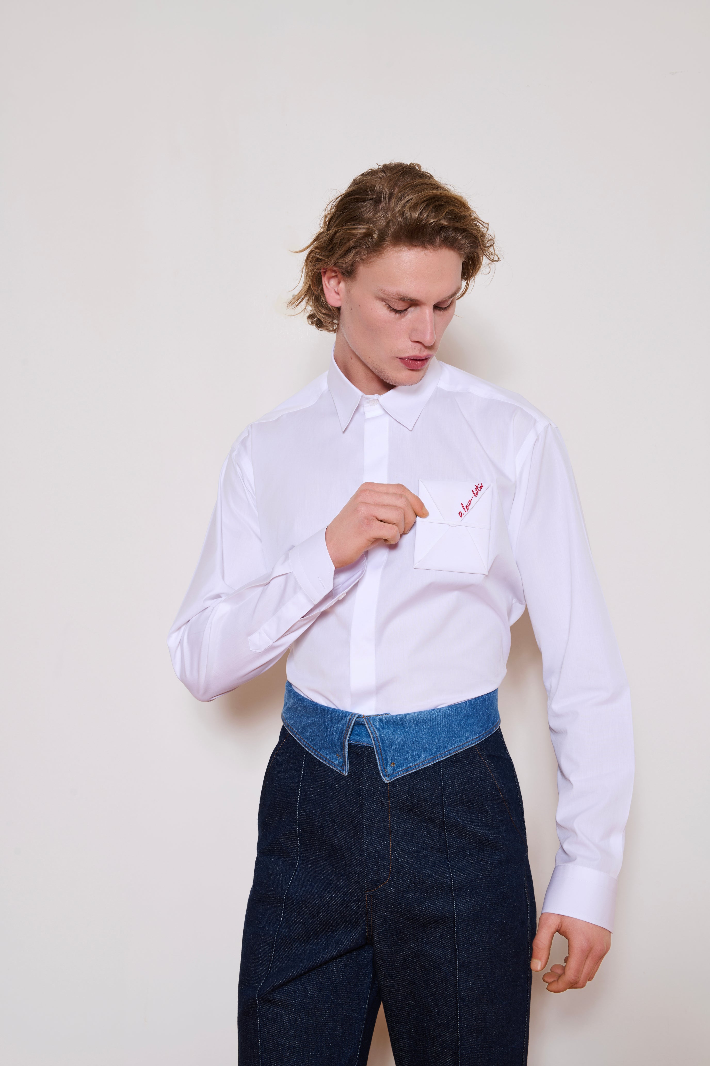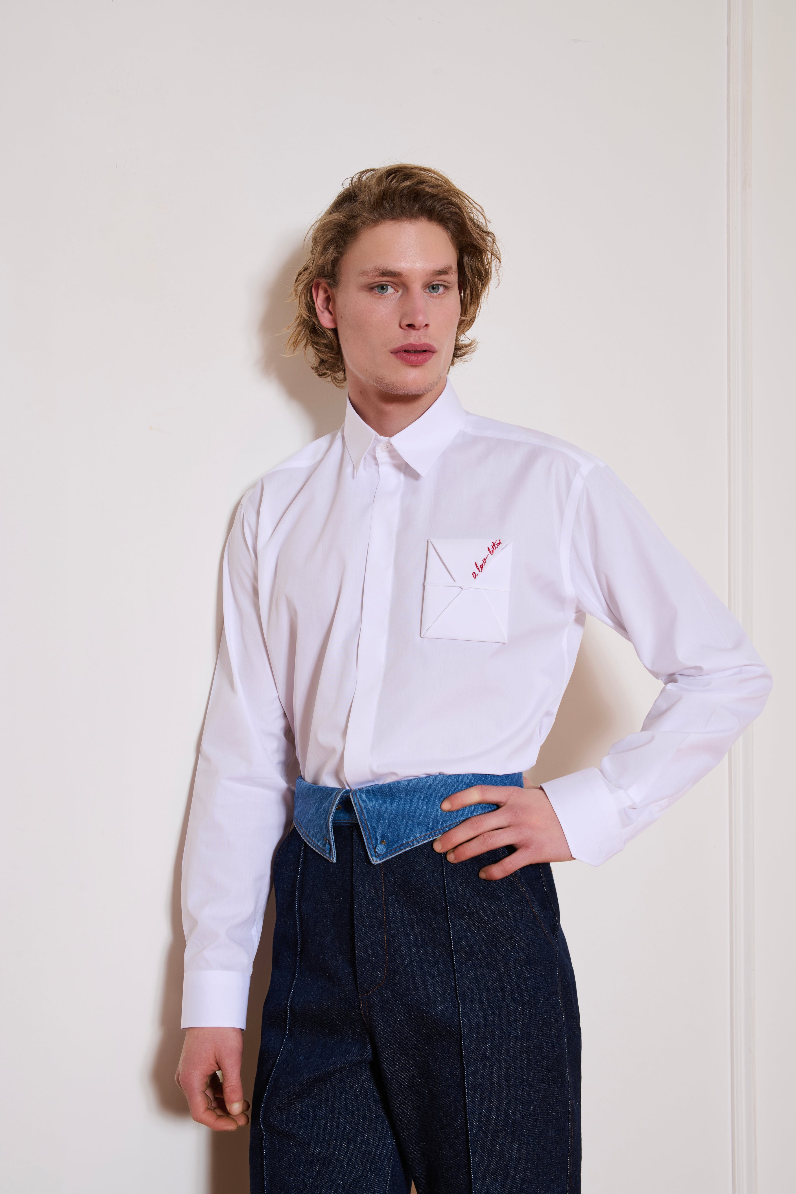 Finely tailored Poplin standard fit shirt, embedded with an envelop shaped pocket on the chest and a hidden red embroidery "Everything İ wanted to say but didn't." beneath the collar.