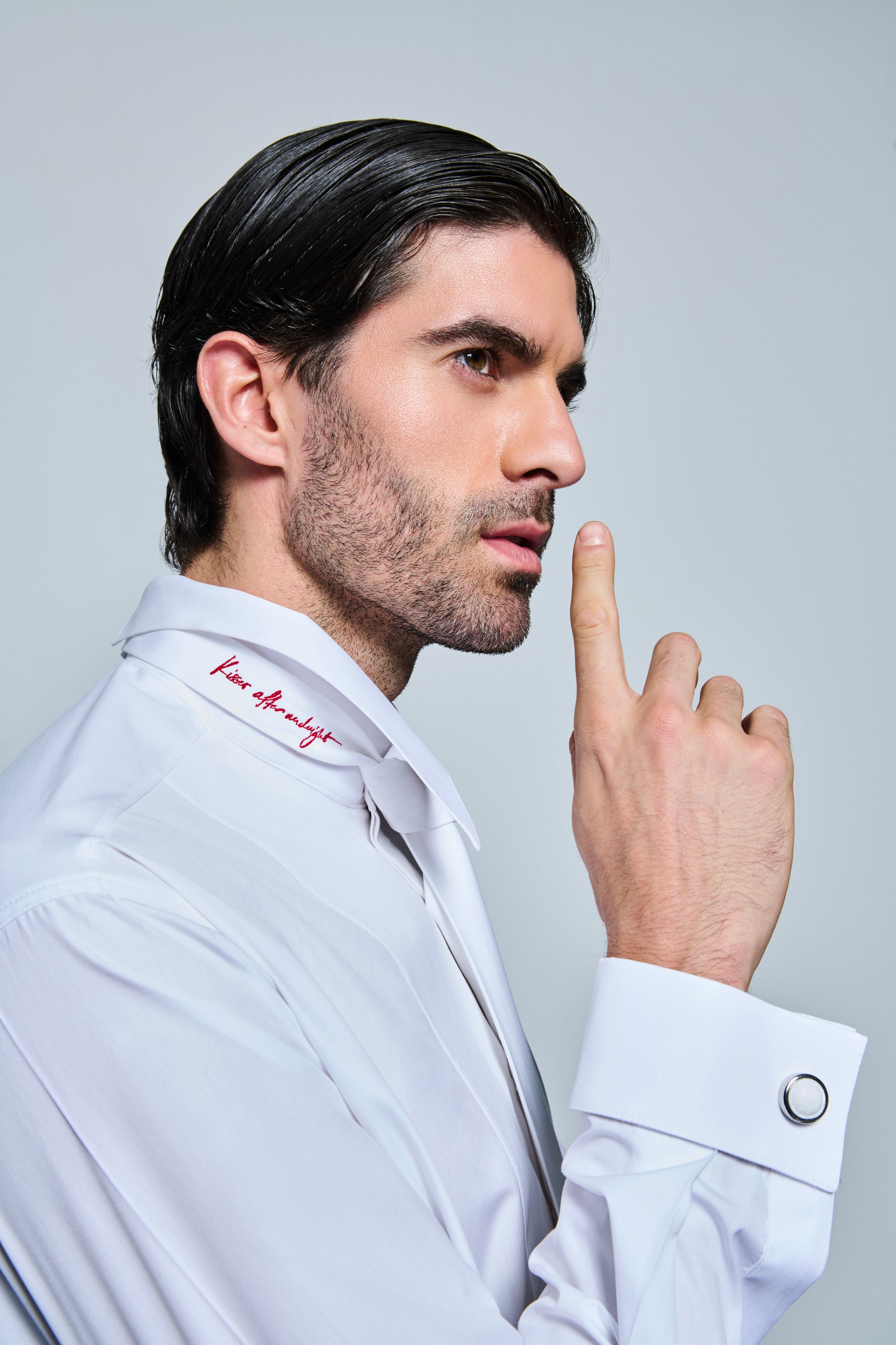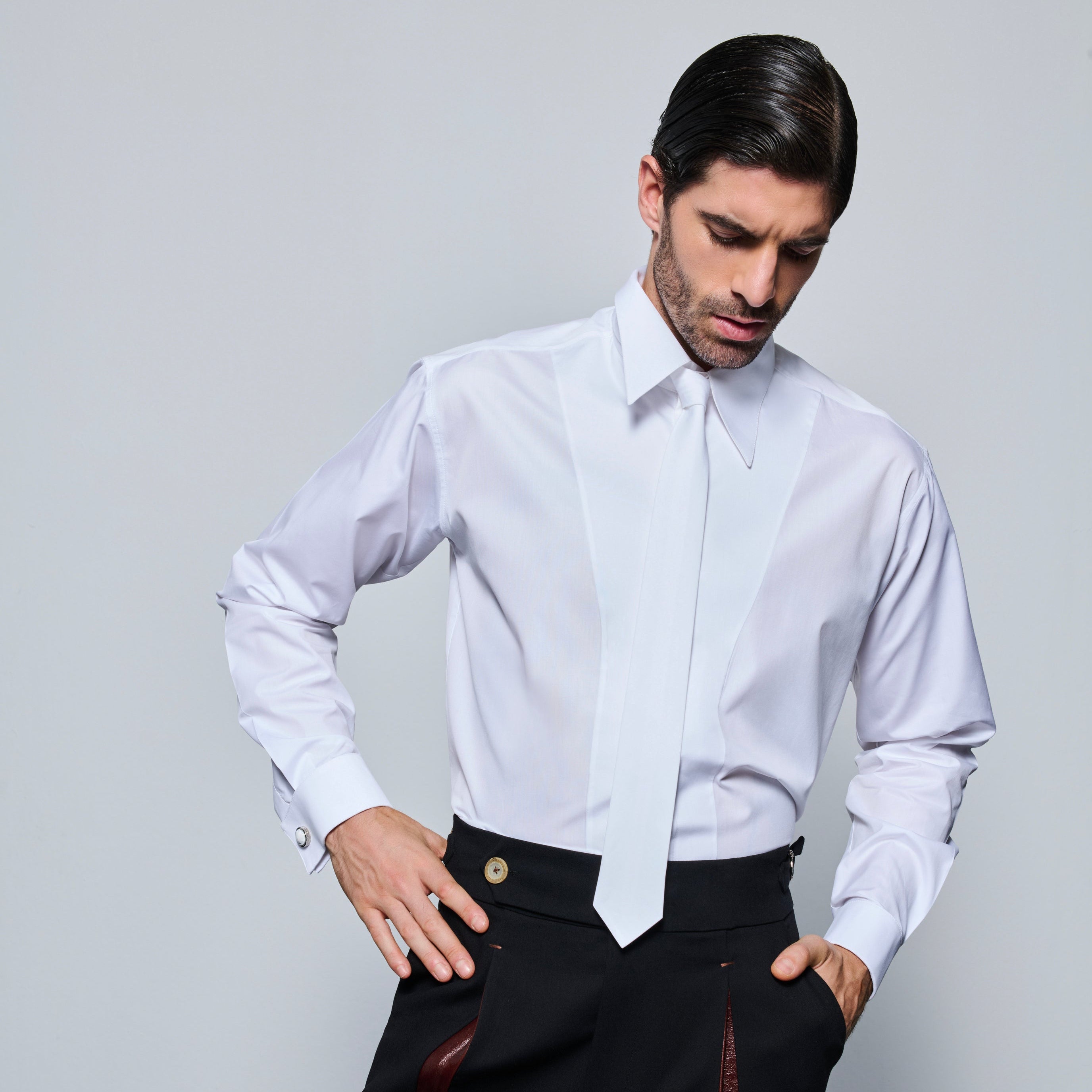 Standard fit white poplin shirt made with 100 % cotton fabric with a removable White Poplin tie.