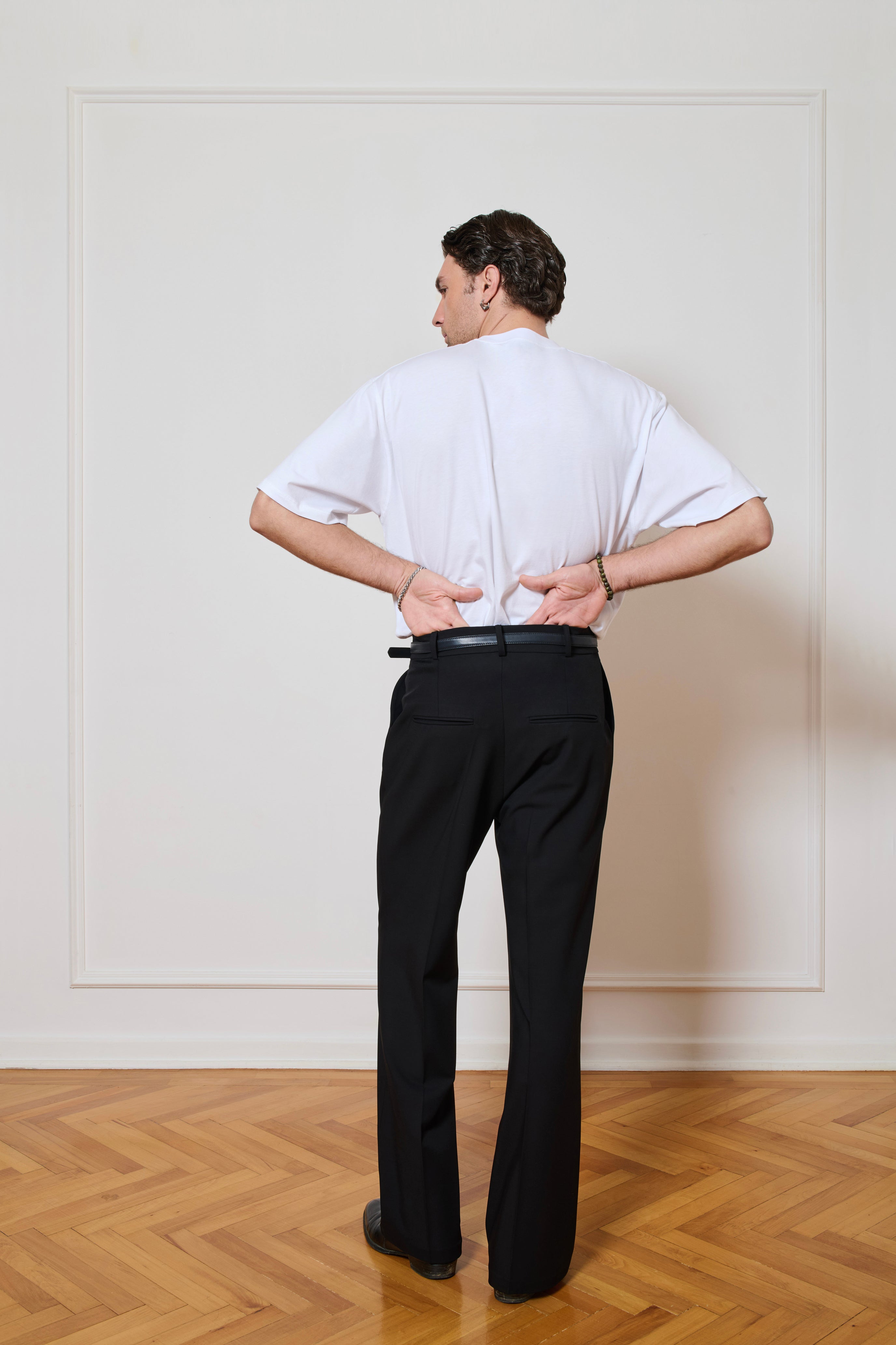 Model wearing M.
