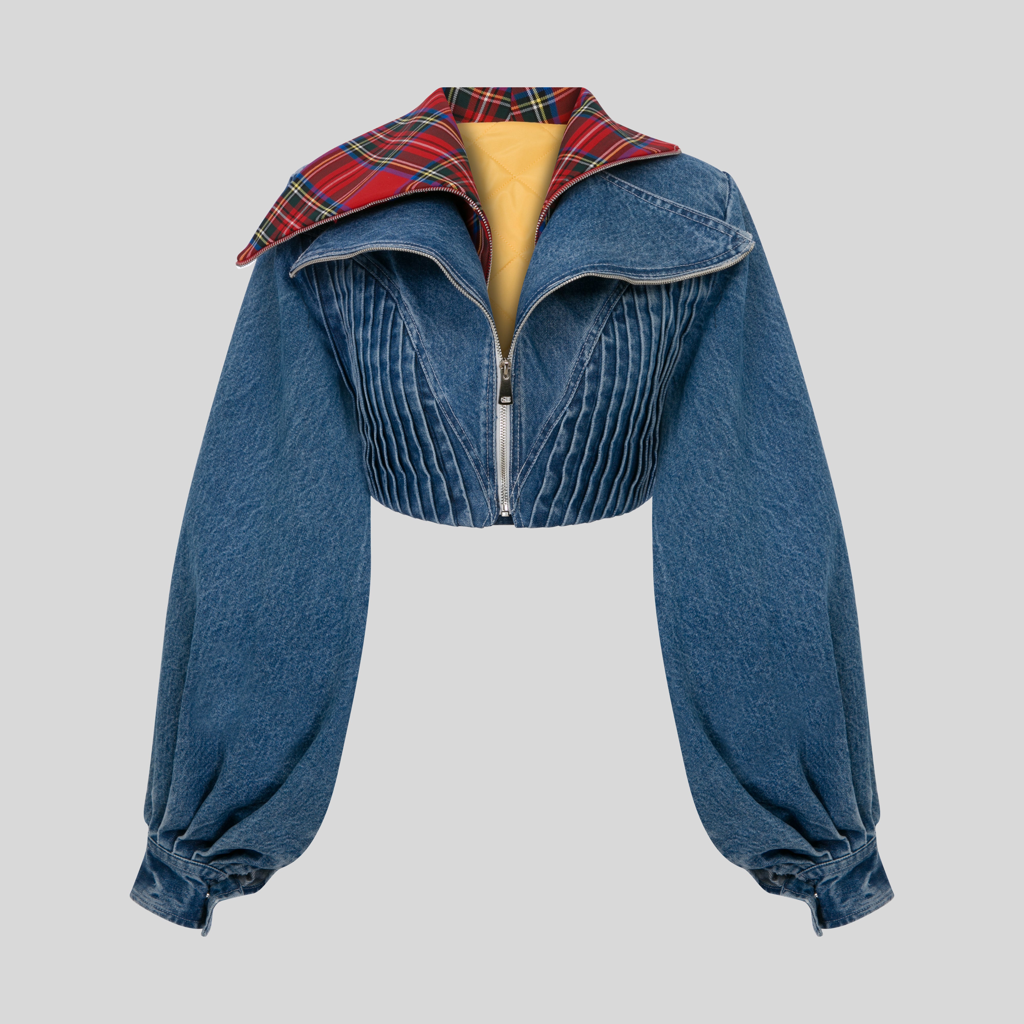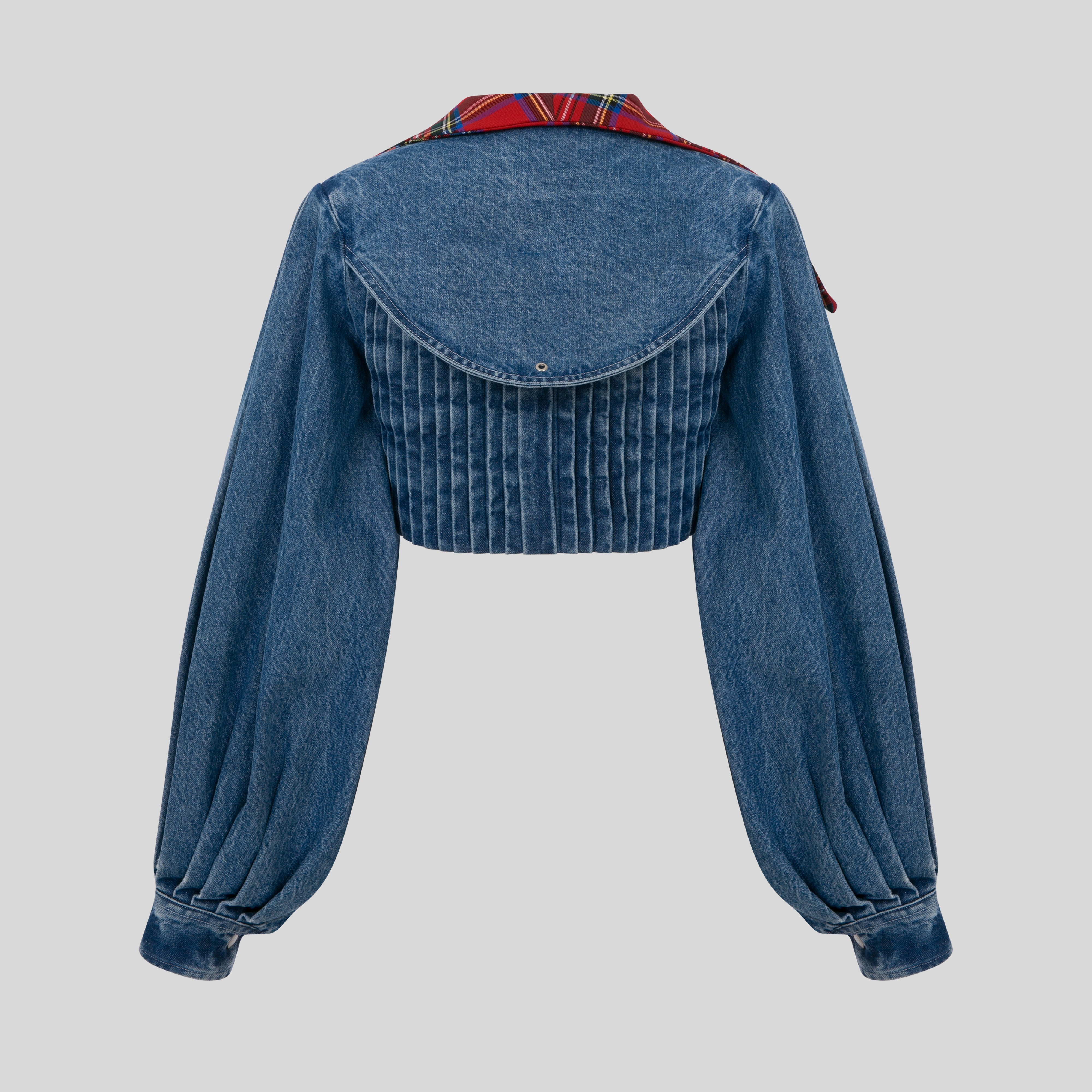Denim short jacket with wide sleeves and wide collars.