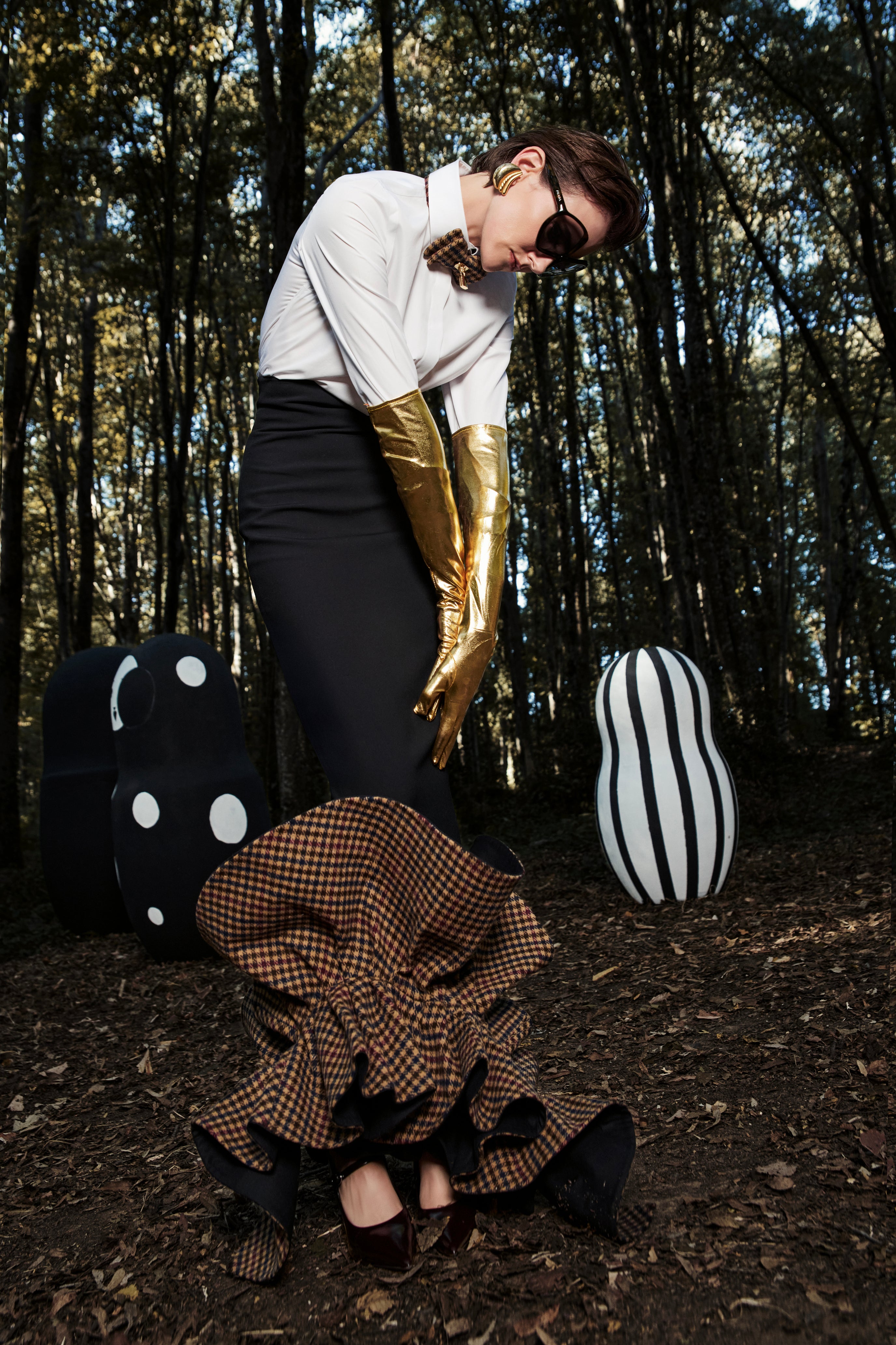 High waist Black skirt fit to waist with cotton fabric , detailed with a hand draped Tartan bottom detail.