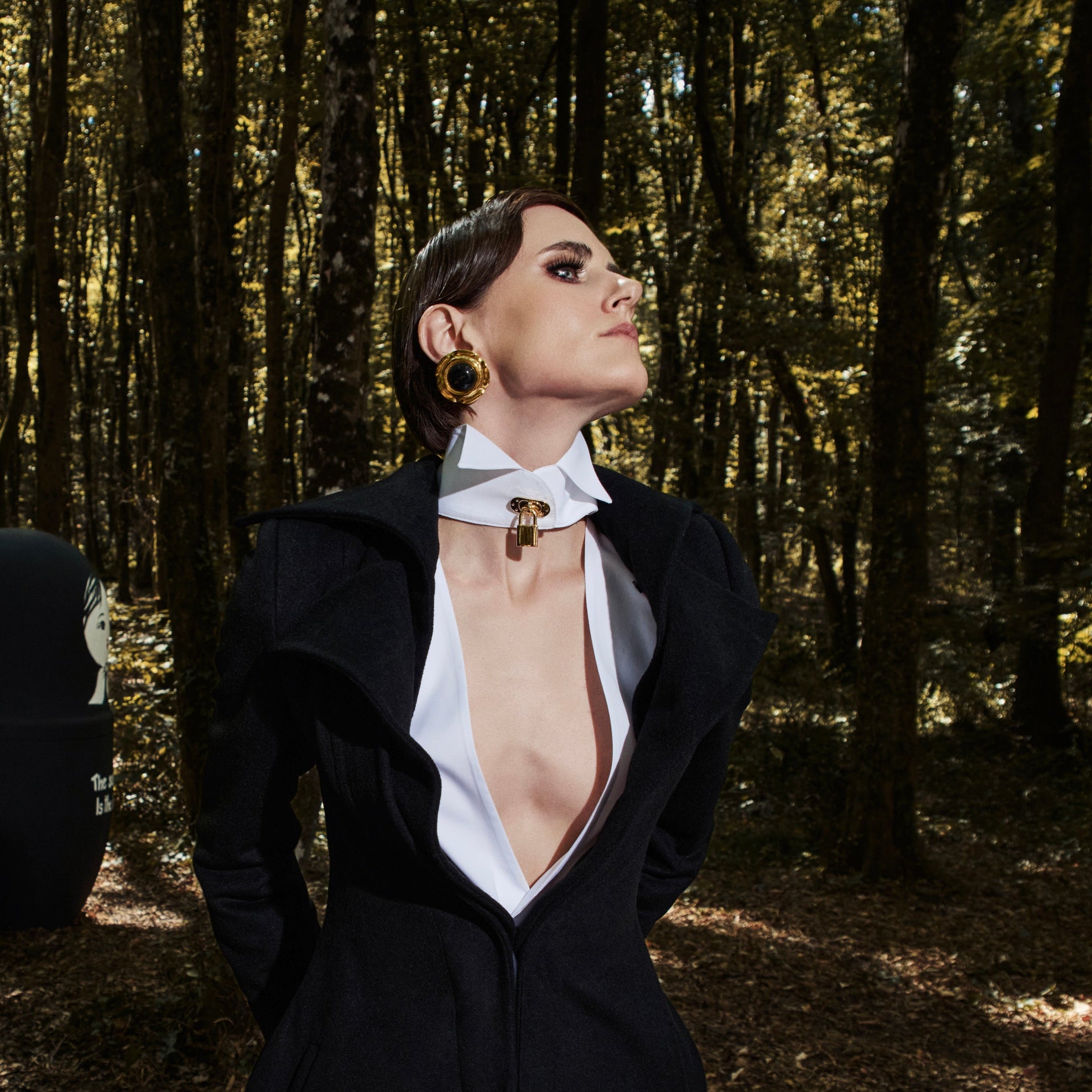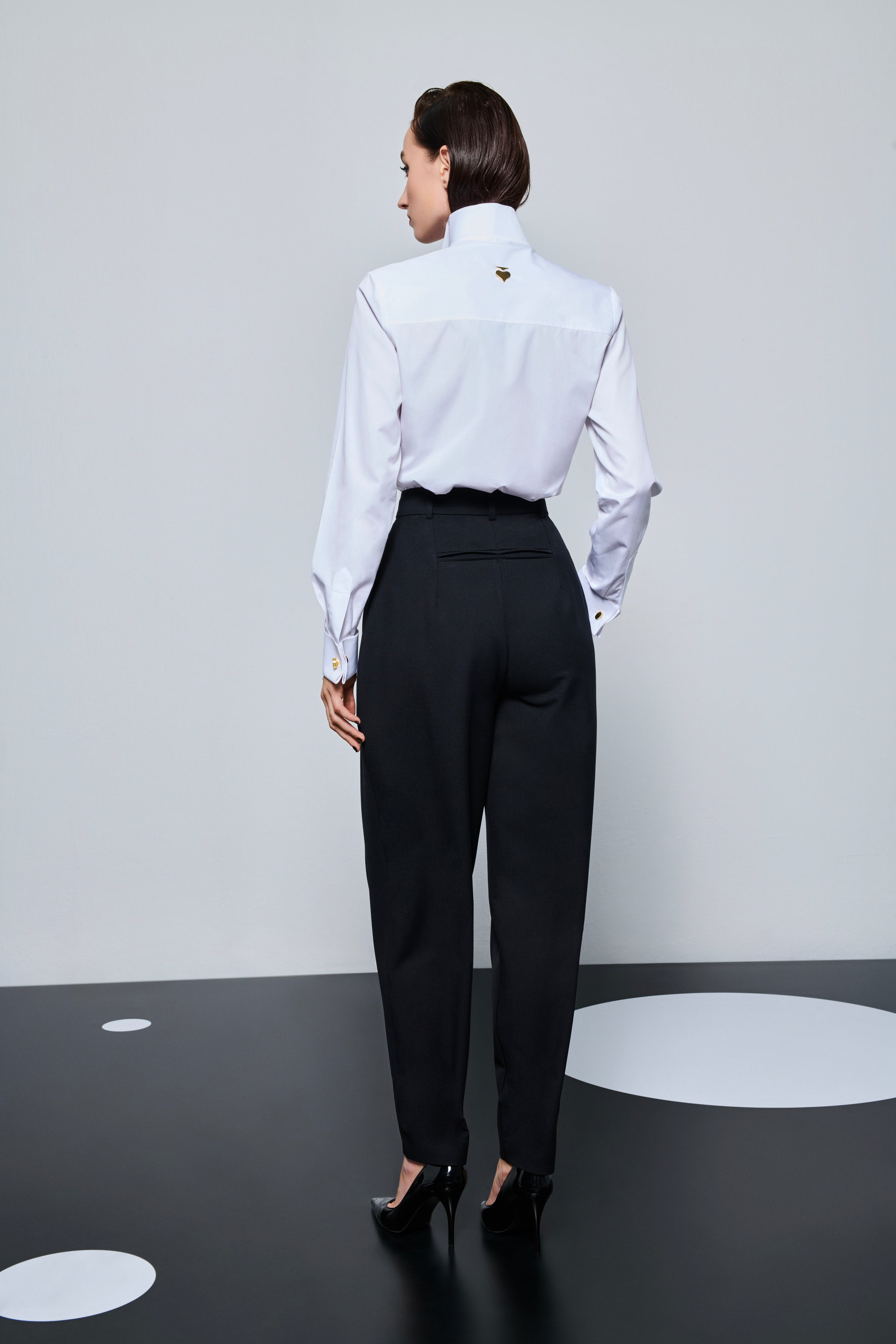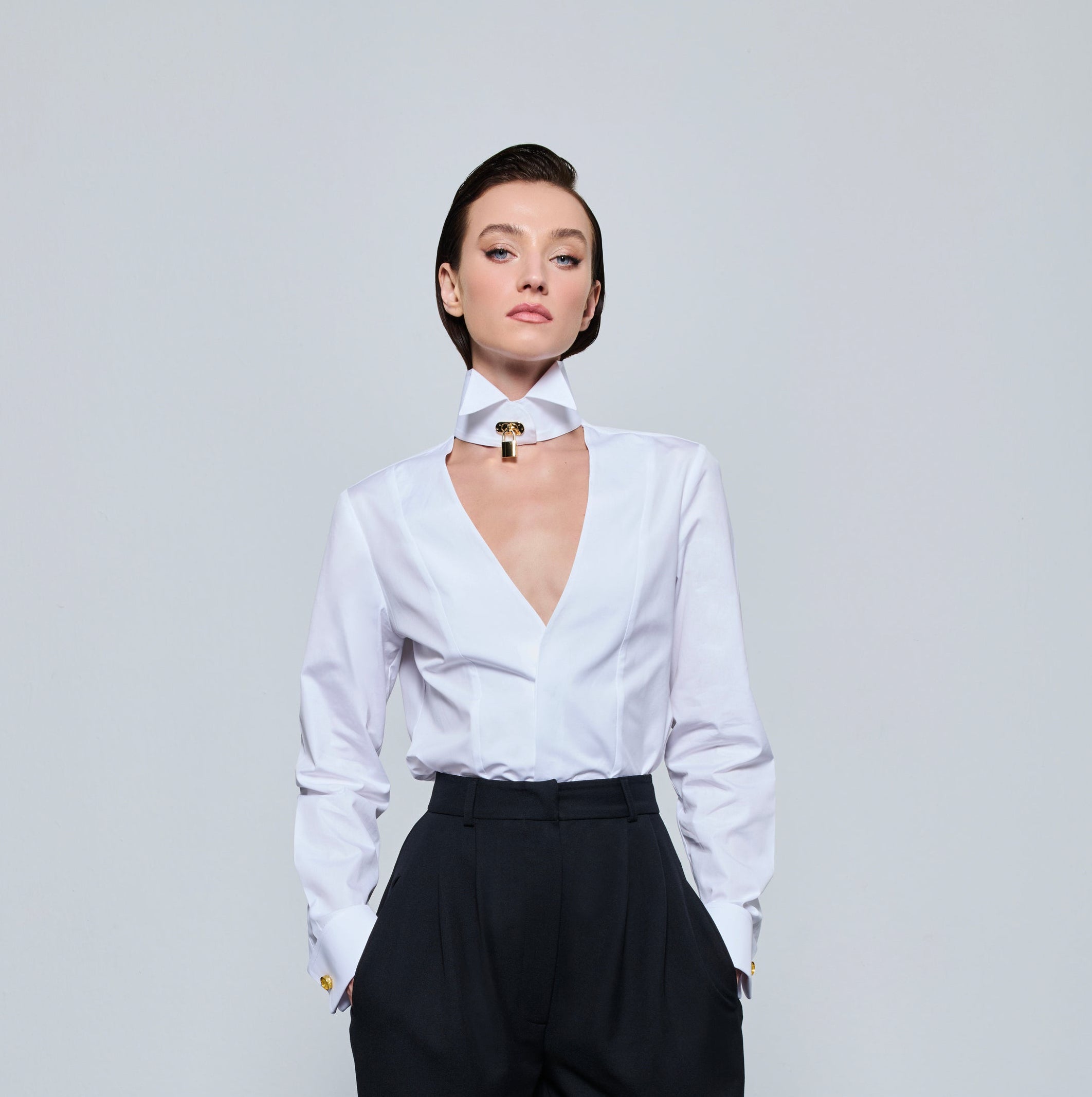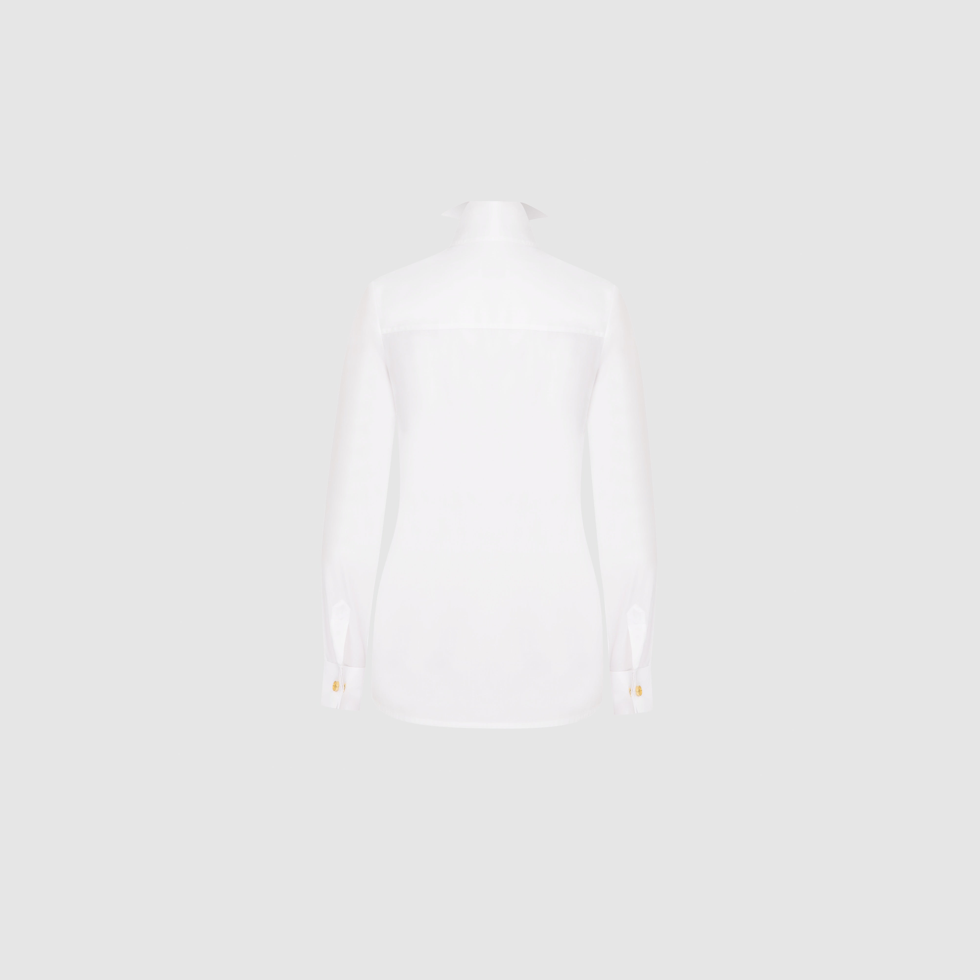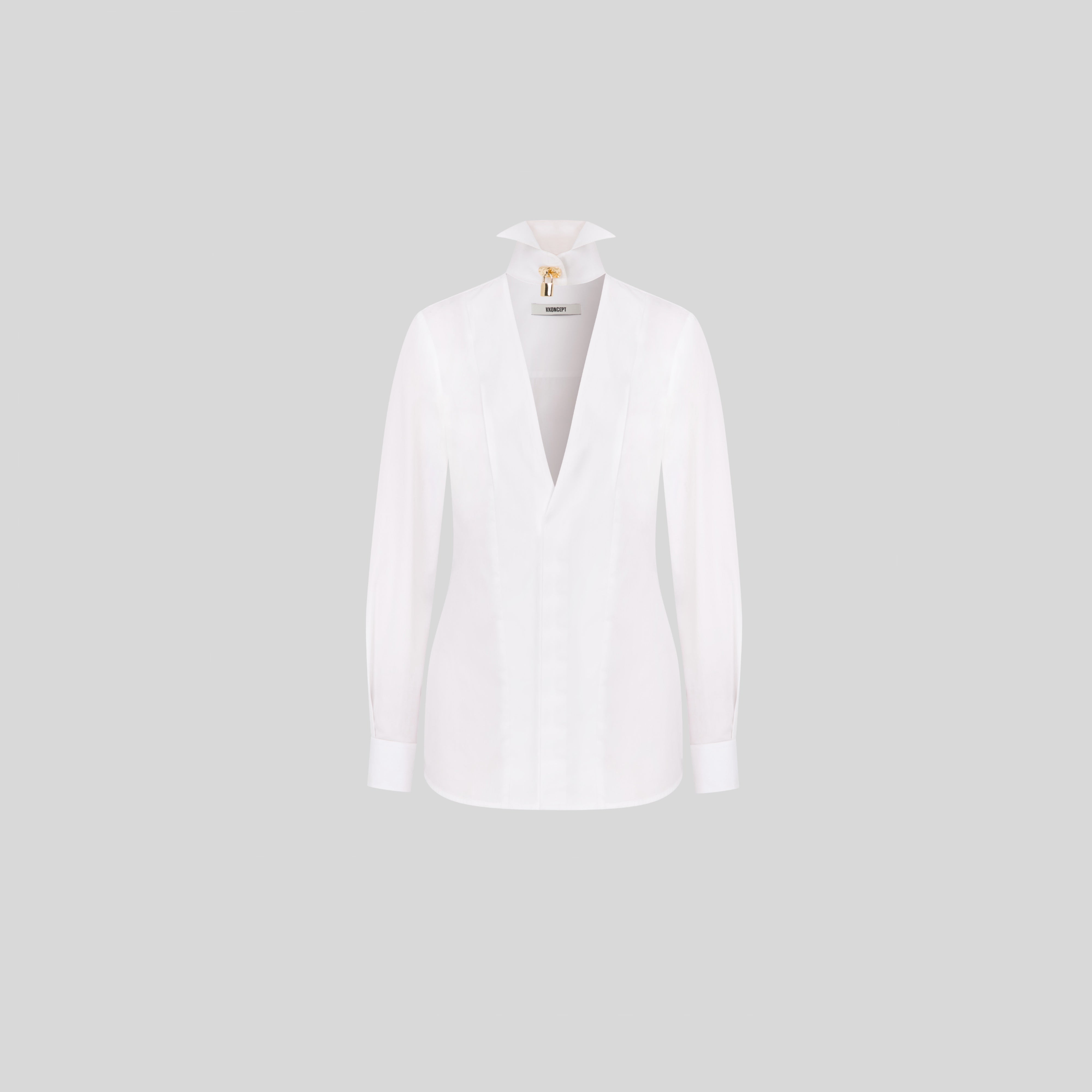 Slim fit white poplin shirt made with 100 % cotton fabric with a V shaped opening on the chest.
