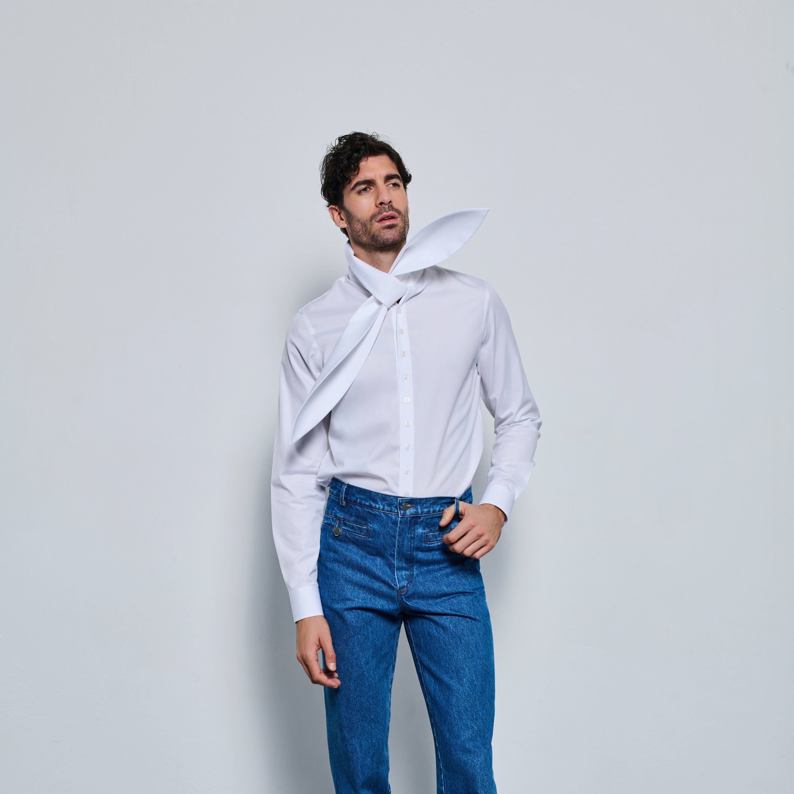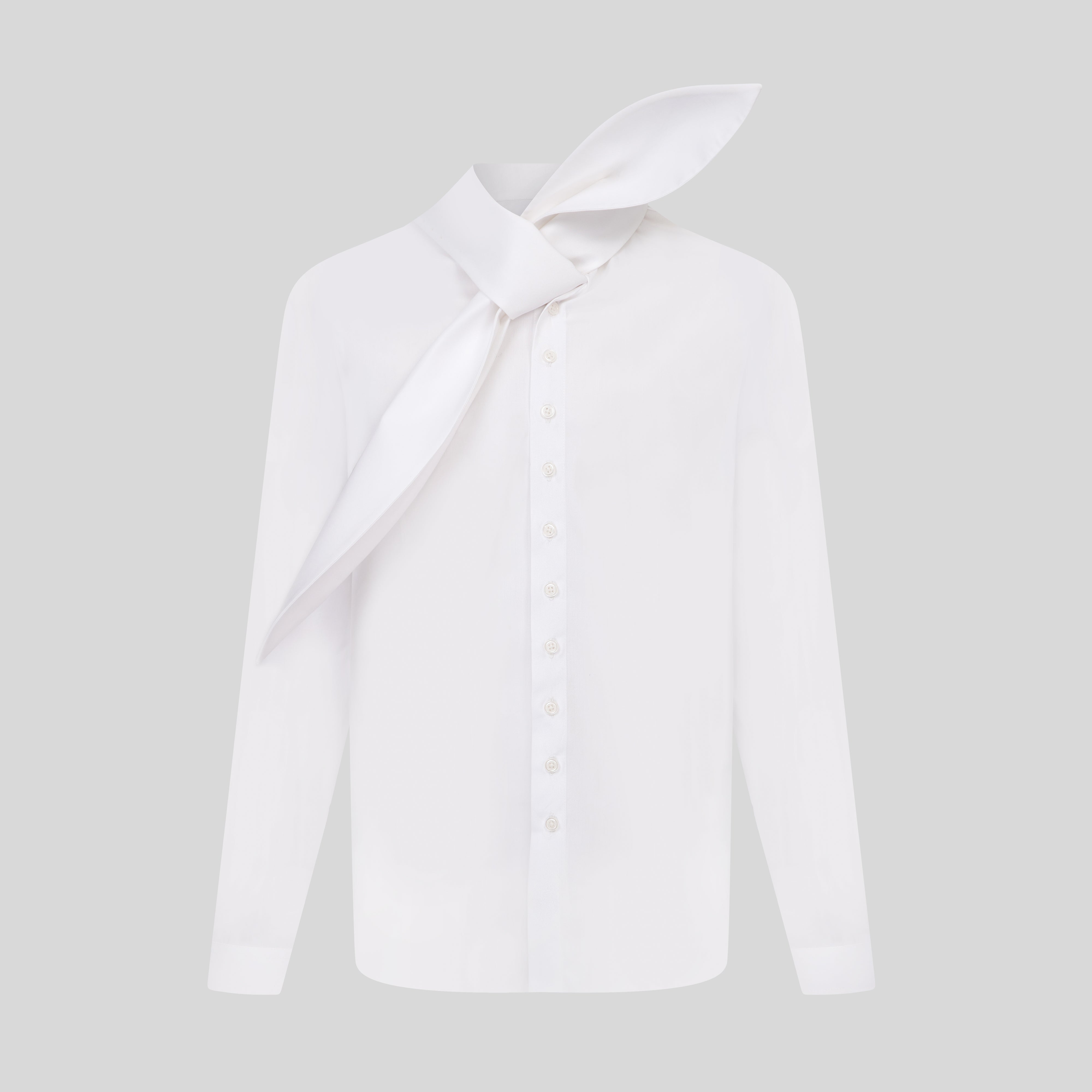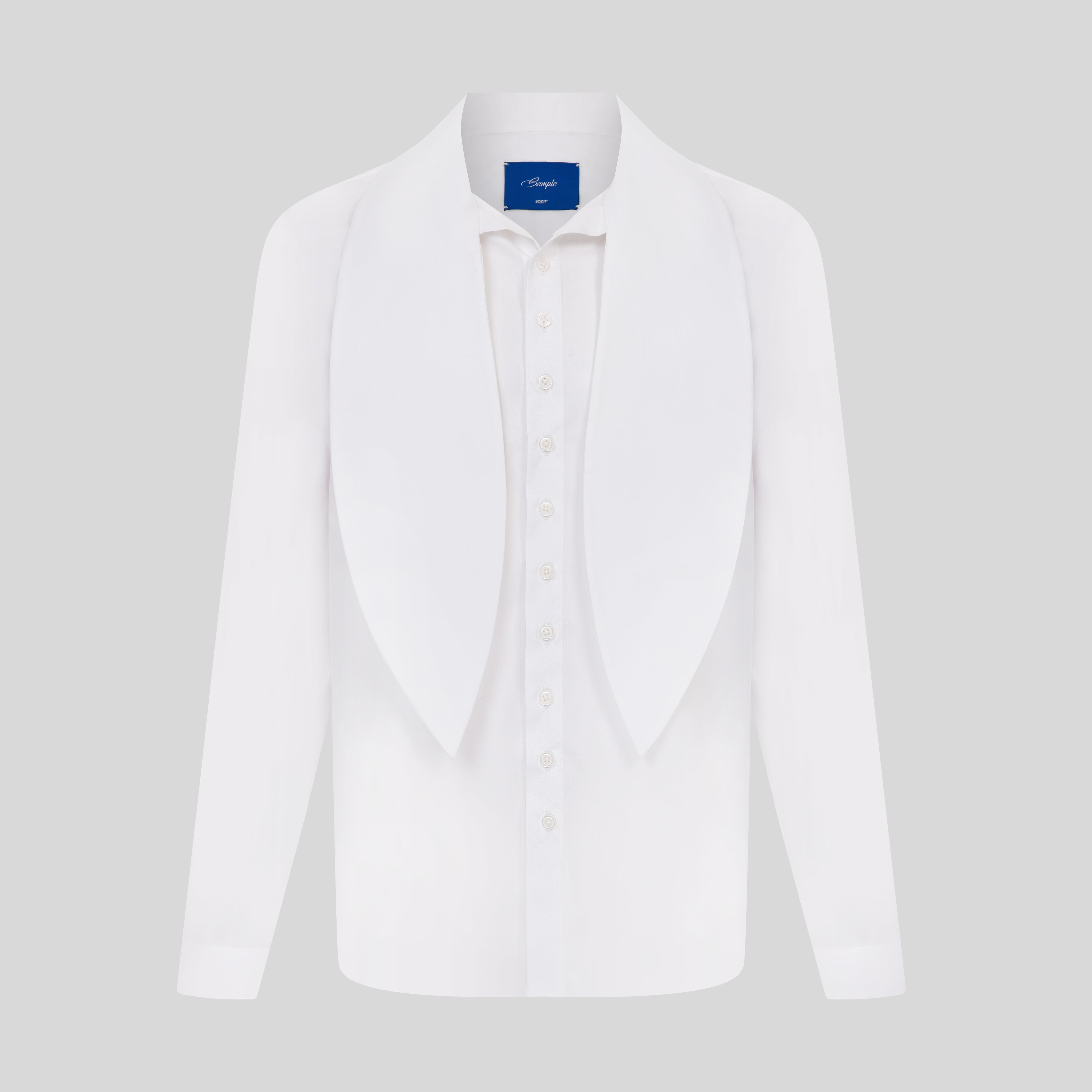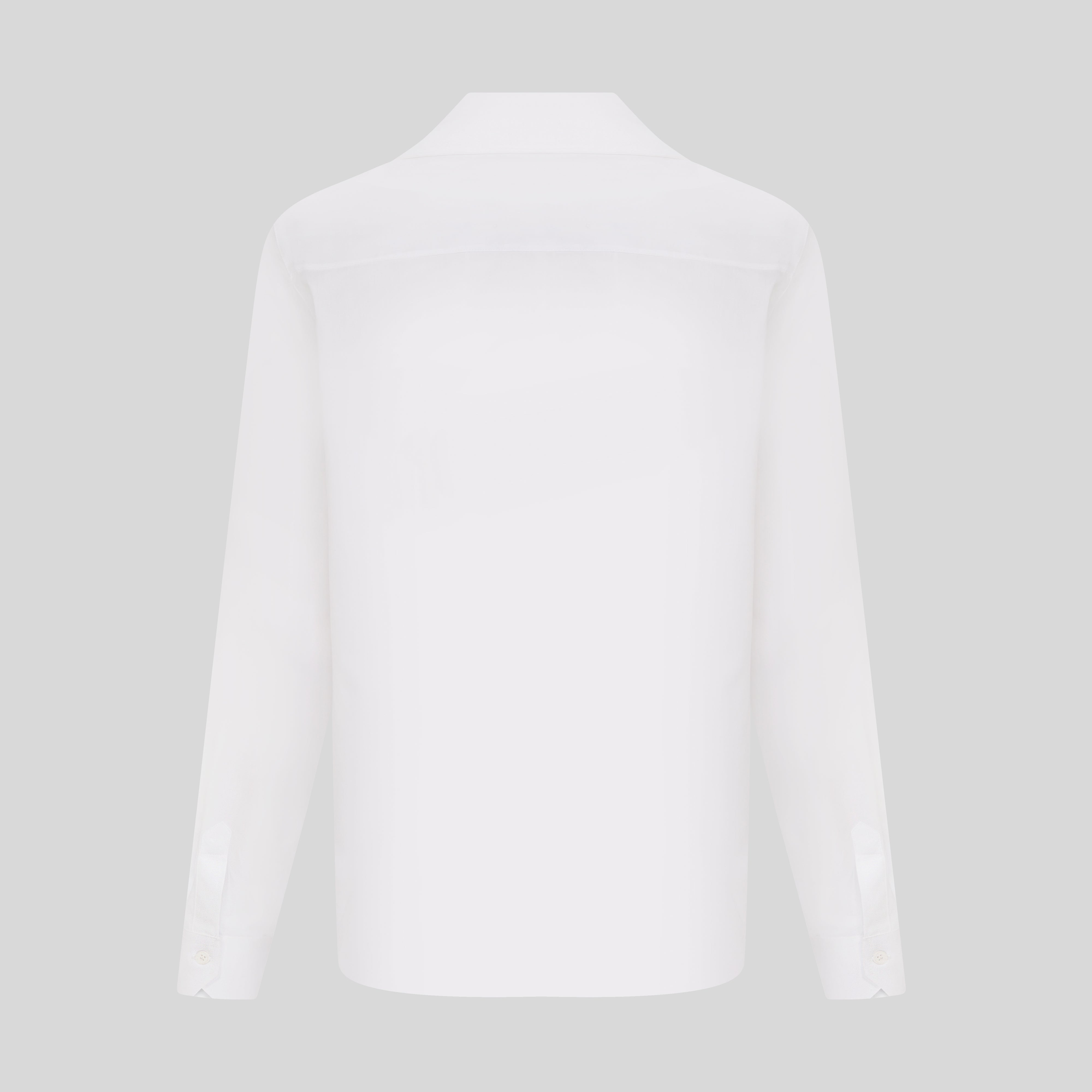 Standard fit white poplin shirt made with 100 % cotton fabric with an elongated fabric nod.