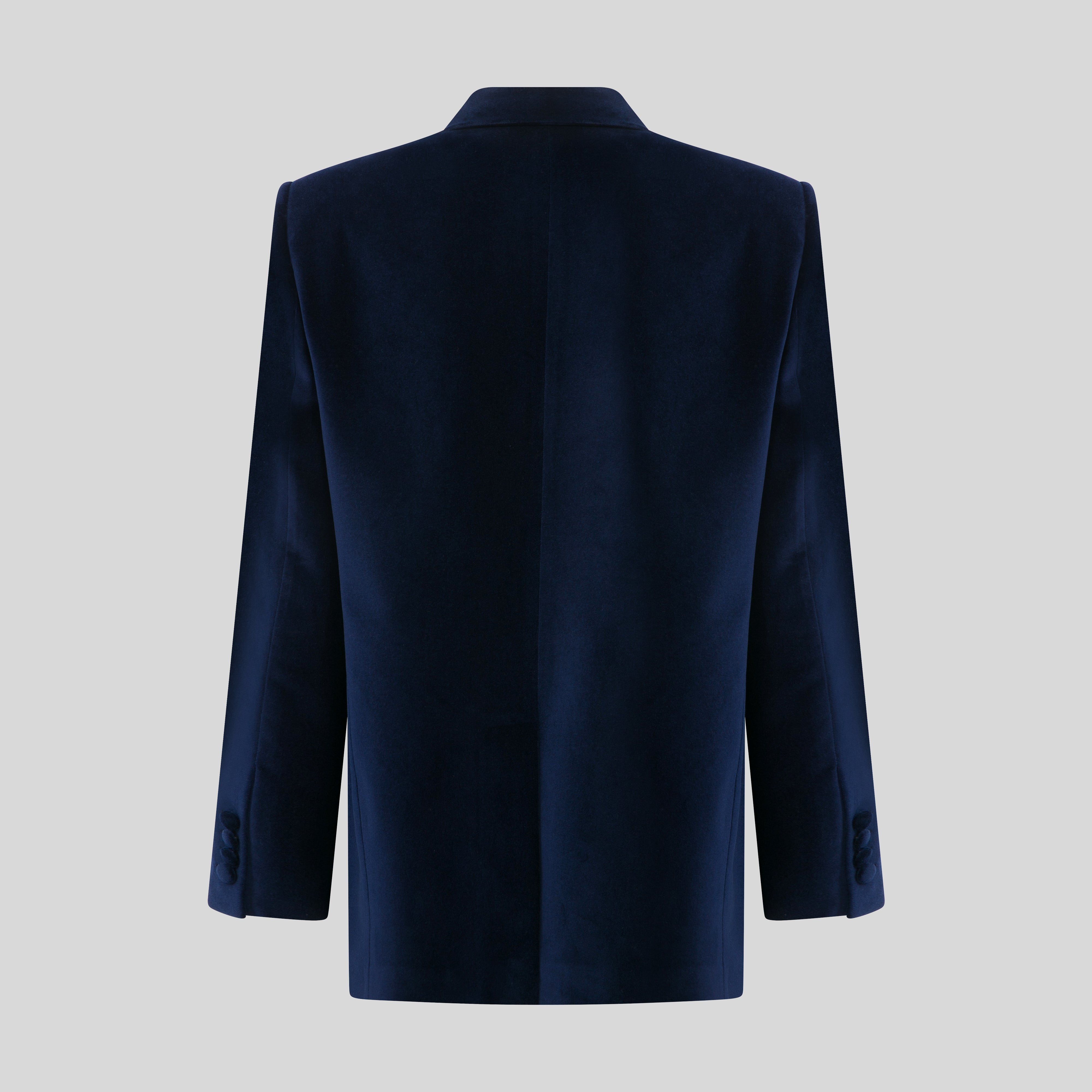 DOUBLE-BREASTED, single BUTTON JACKET MADE WITH CERTIFIED velvet , FEATURING A PEAKED LAPEL AND AN OVERSIZED, ELONGATED FIT