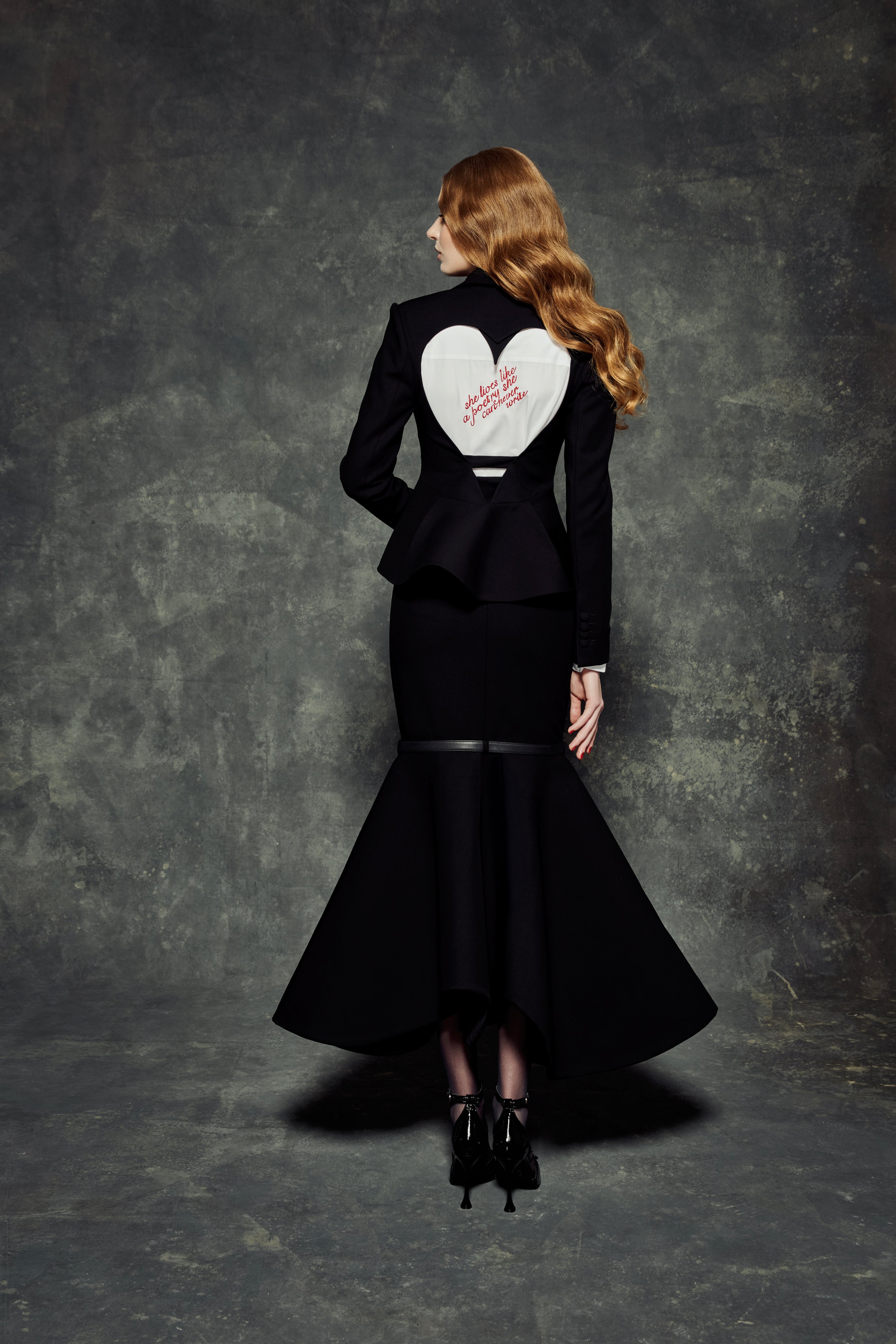 Trumpet-cut skirt designed with a fitted silhouette through the waist and hips, flaring subtly toward the hem. Detailed with a belt accent placed at the lower part of the skirt, adding a structured and contemporary finish.