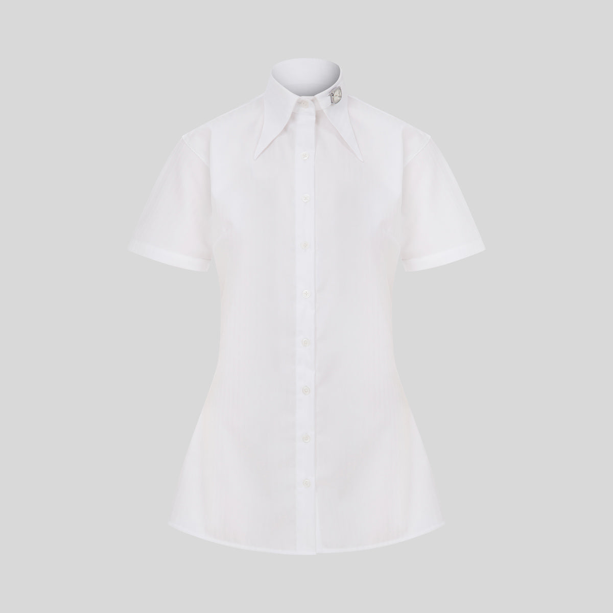 Short sleeve cotton Poplin shirt with a removable KKoncept clock embedded on the collar.