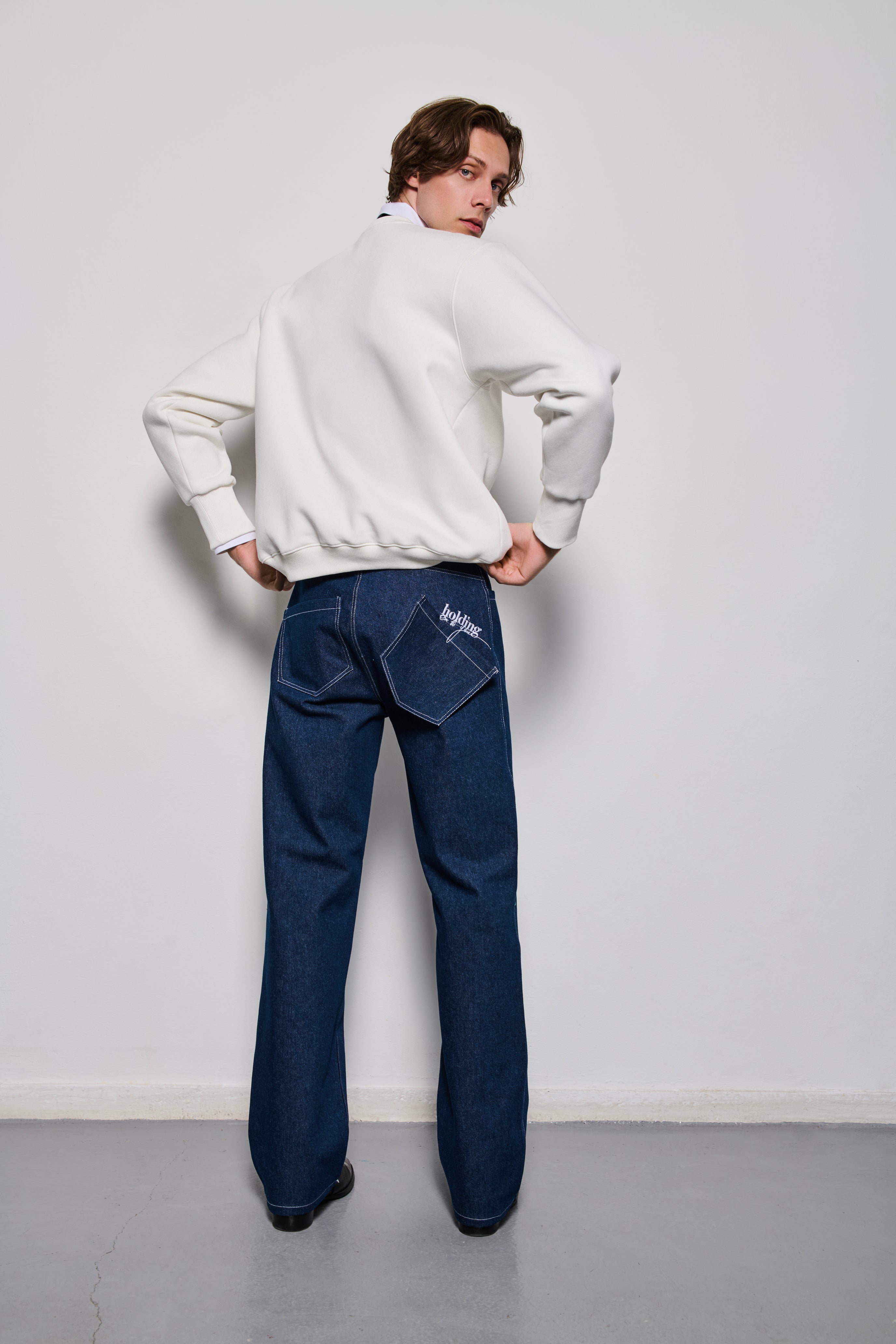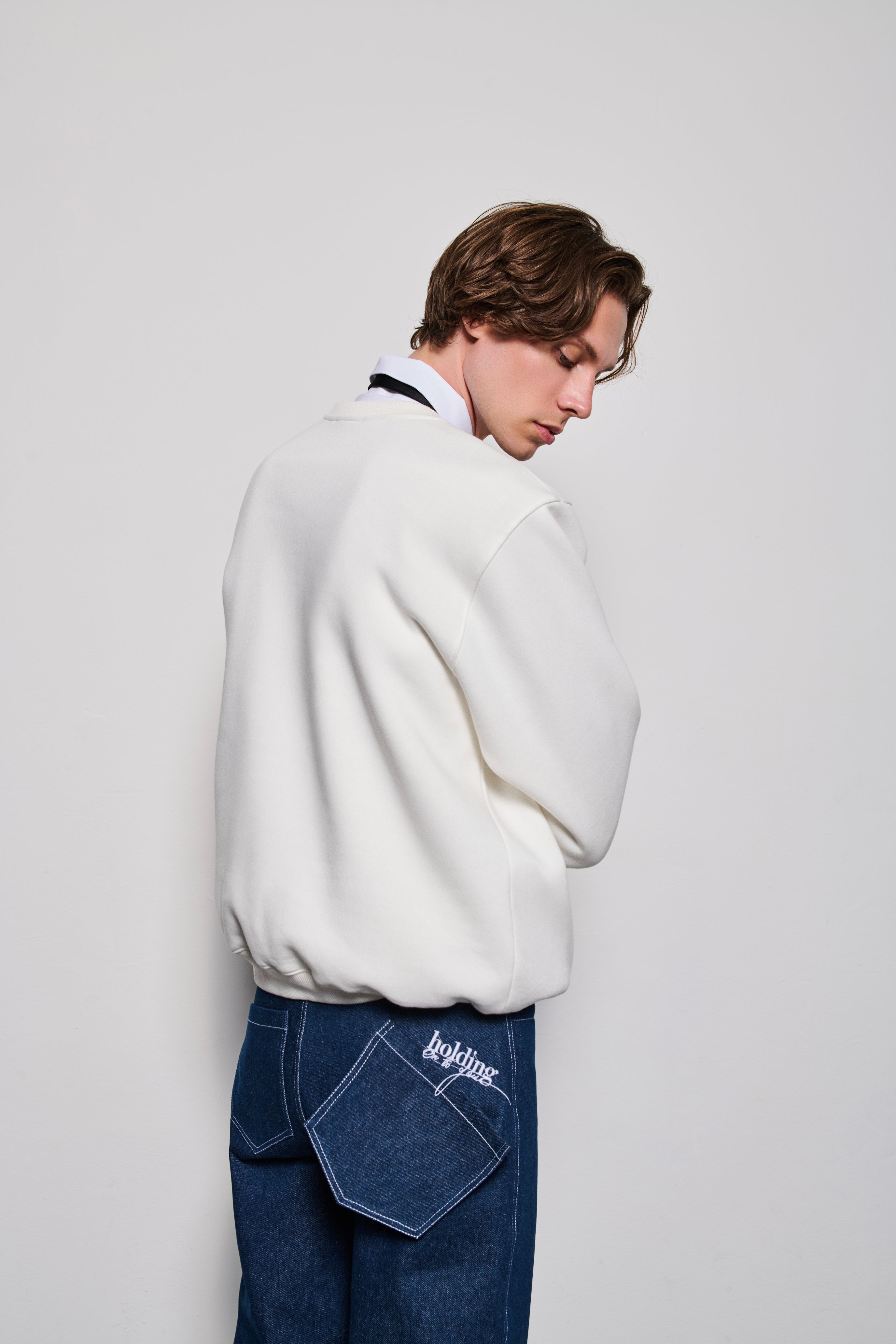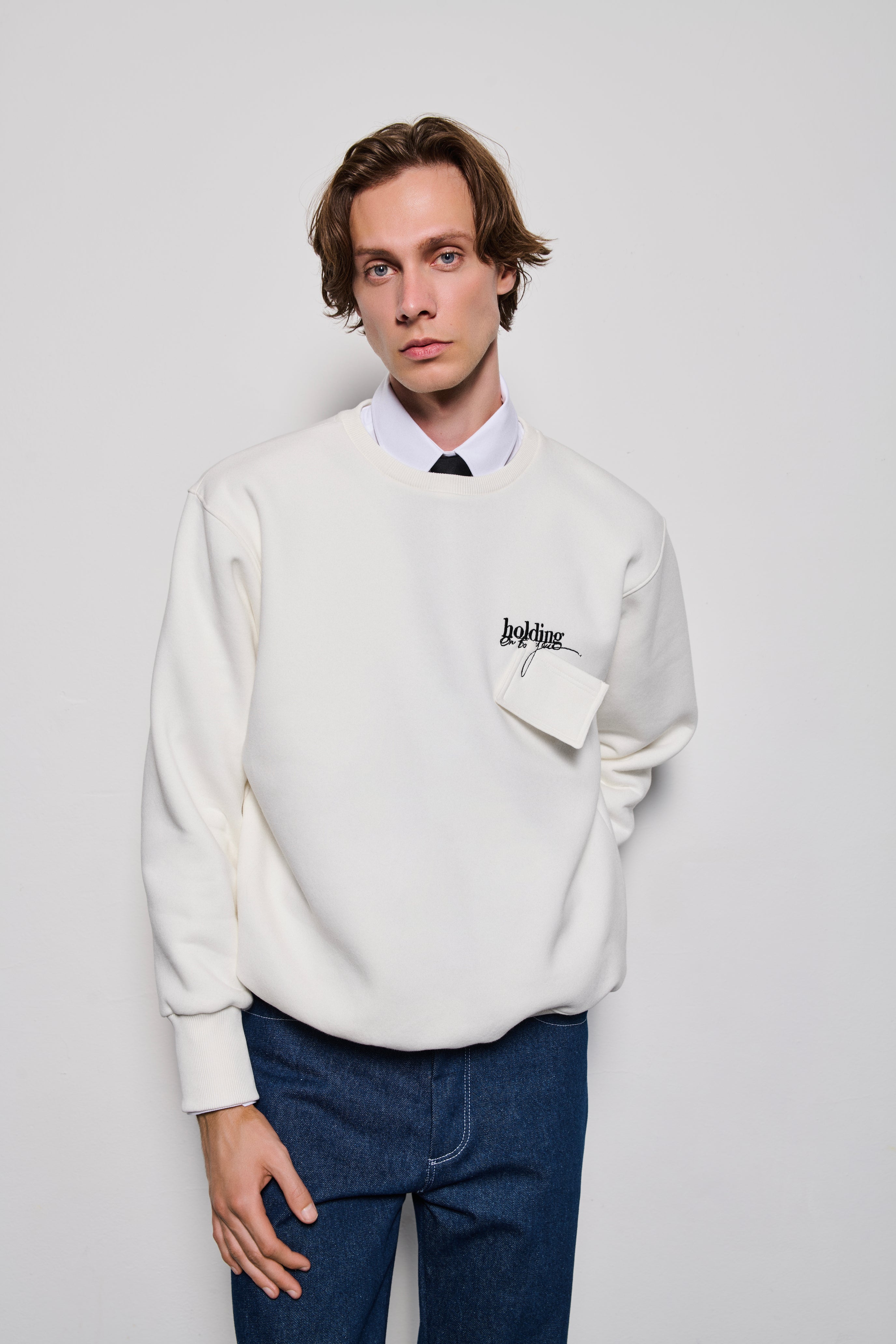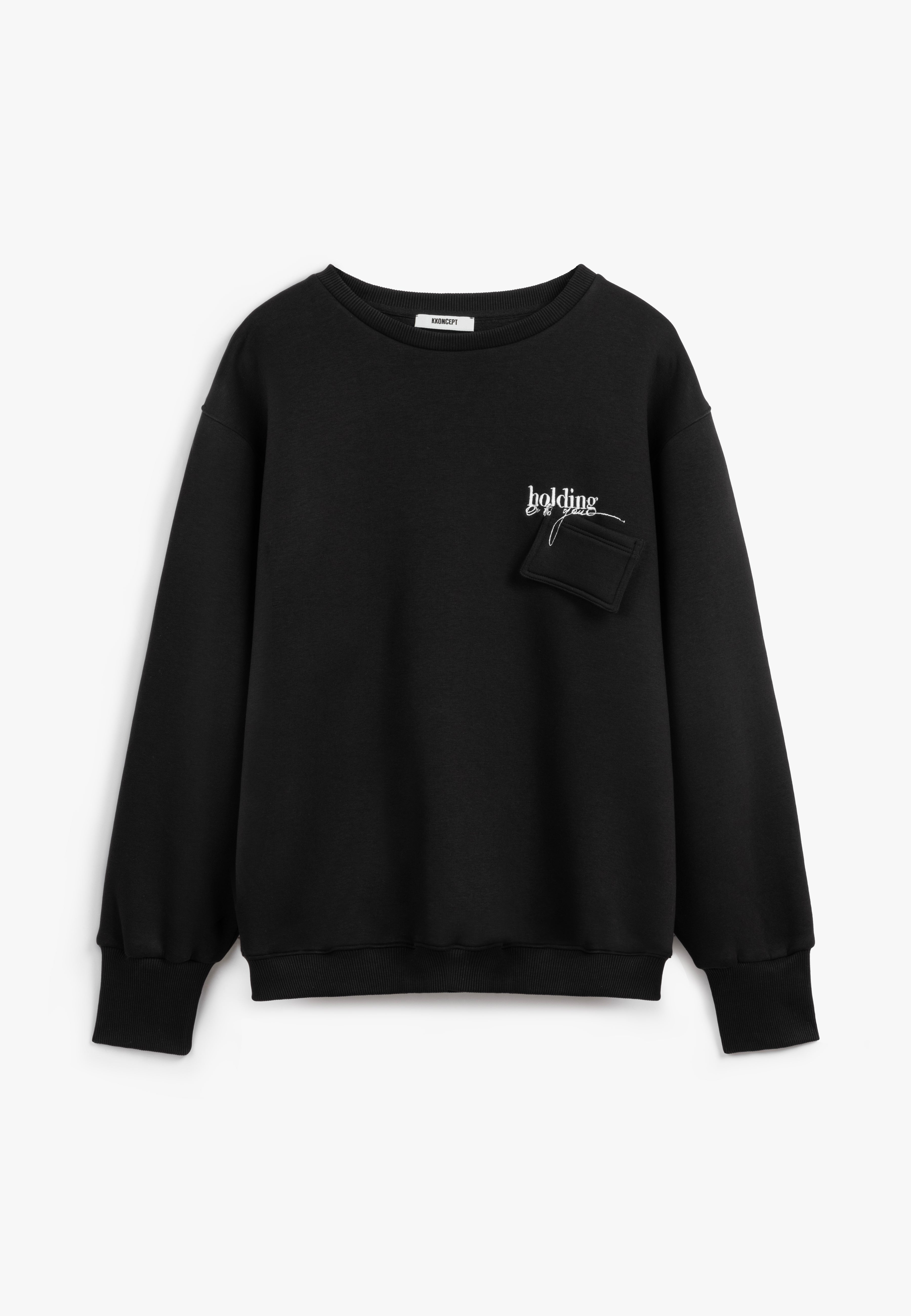 Semi-Oversized 100% Cotton Sweatshirt in White or Black with a 'Holding on to you' embroidery on the chest and a hanging pocket.