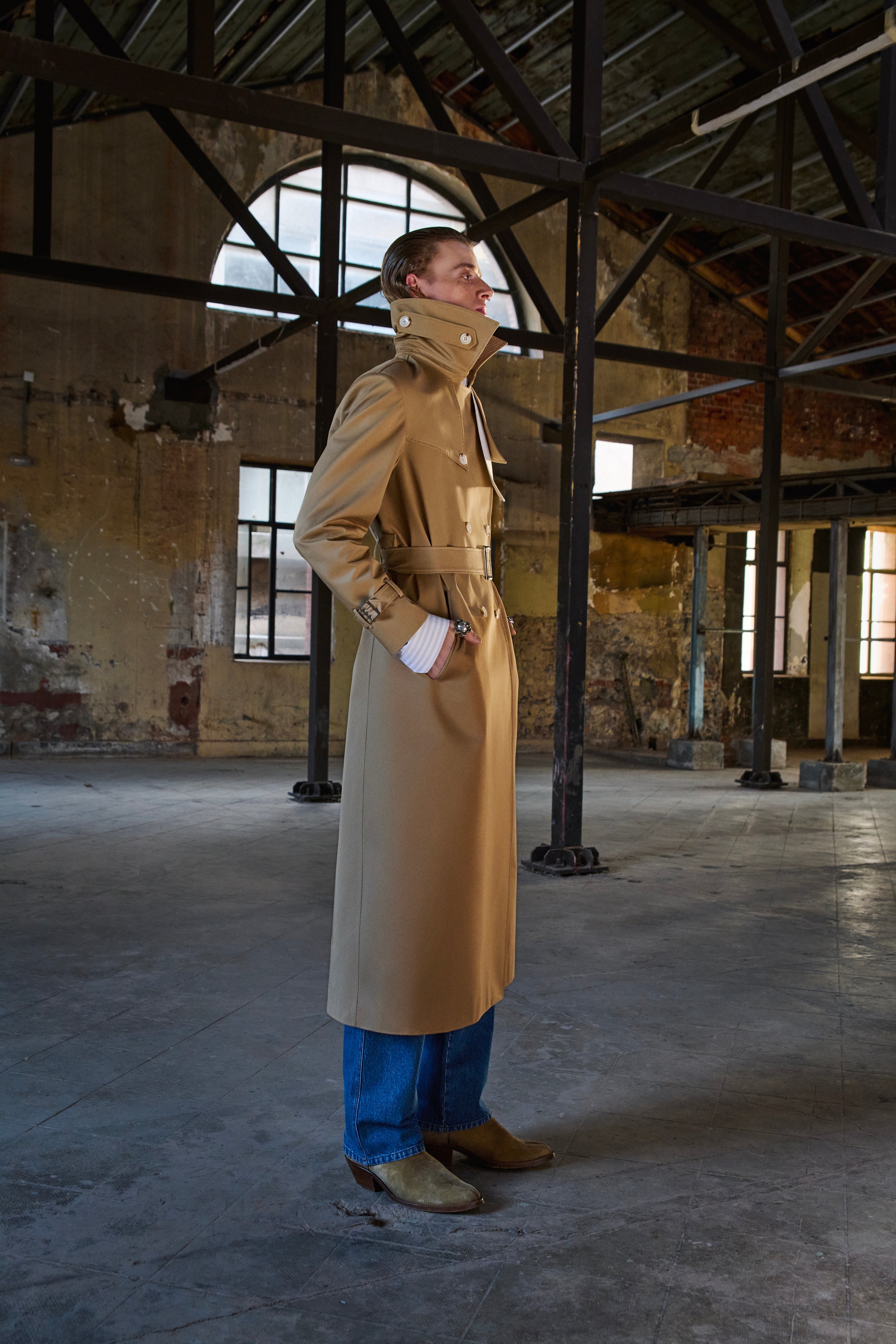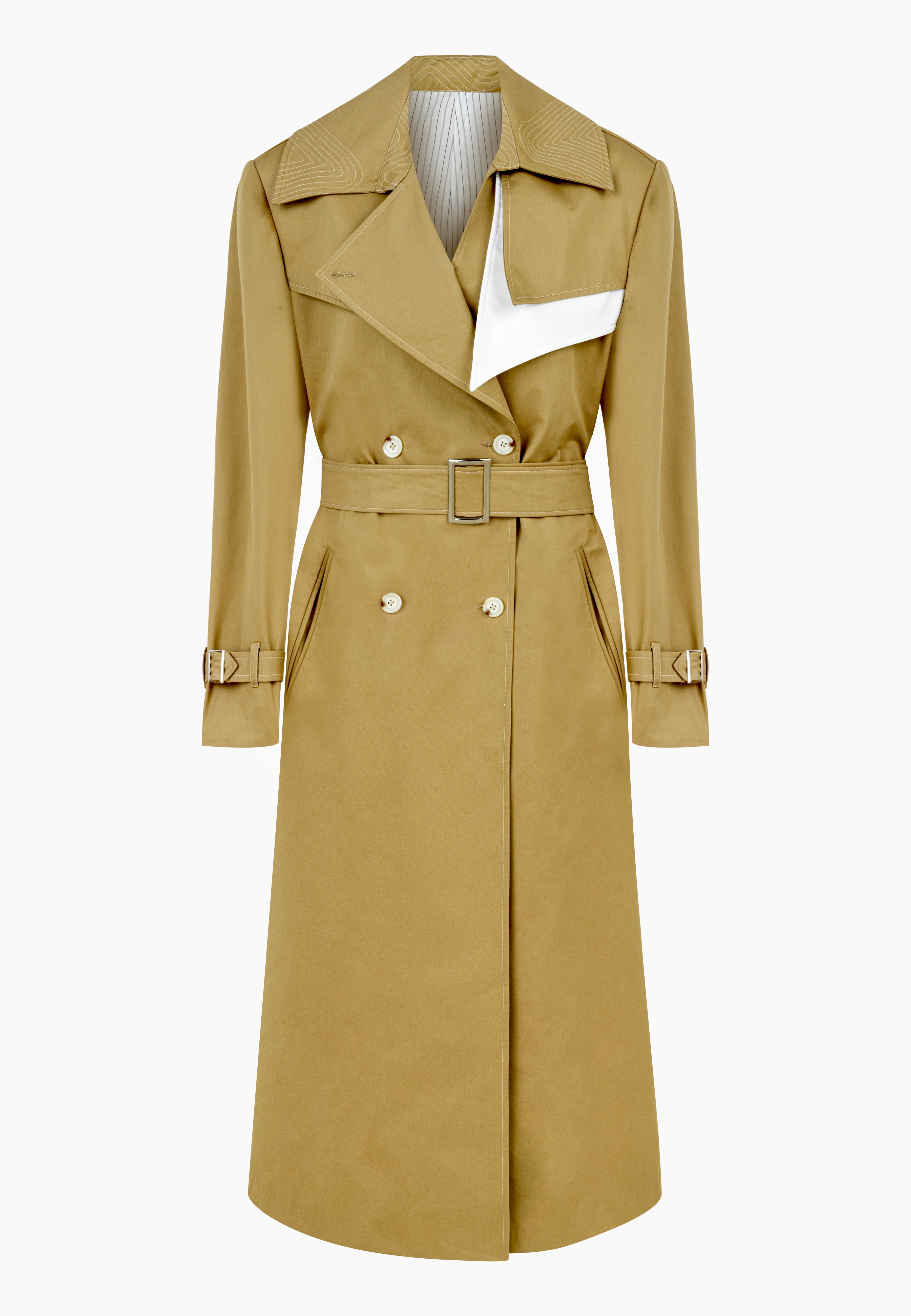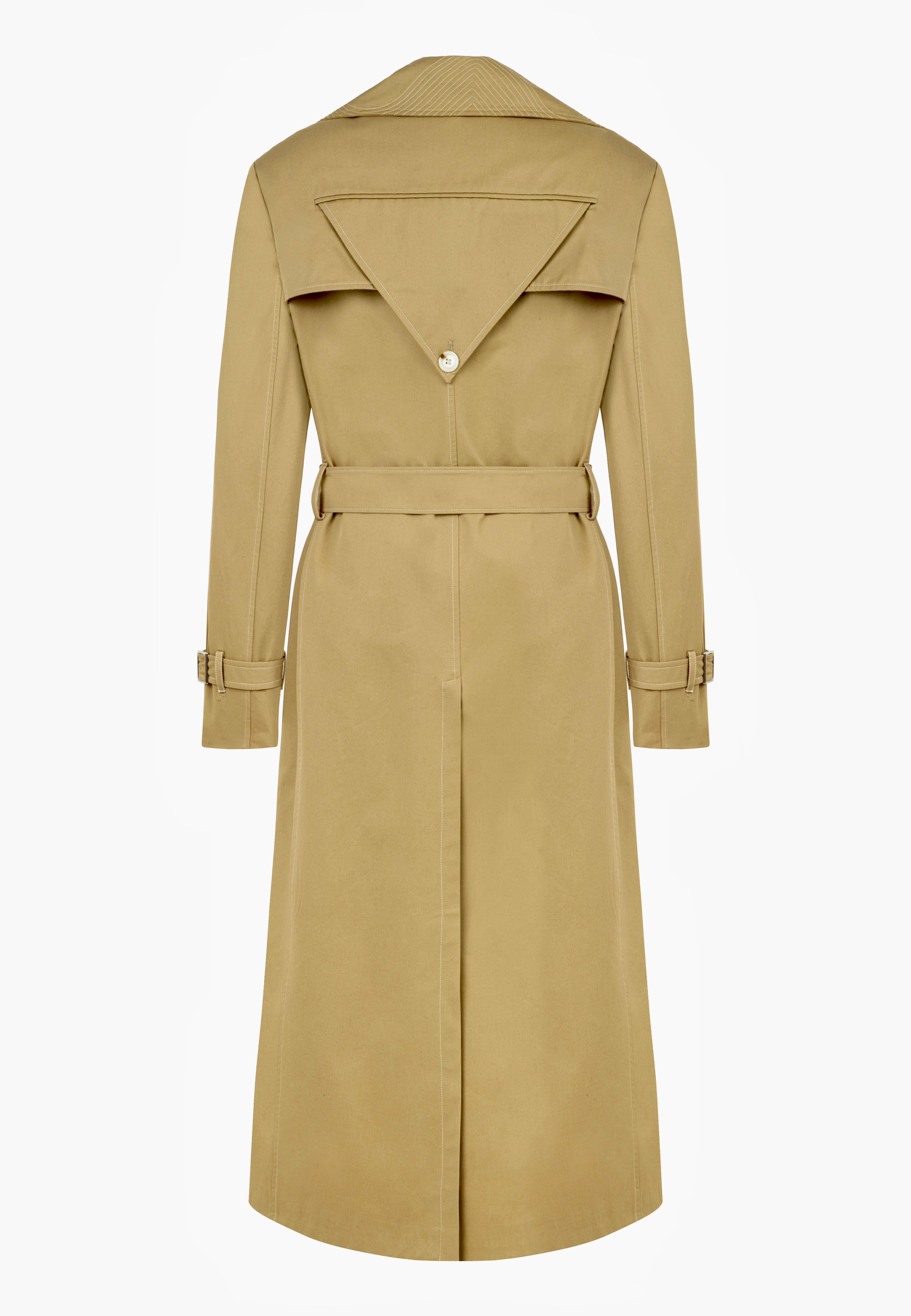 Men water proof cotton twill densely woven Beige Gabardin long Trench Coat.