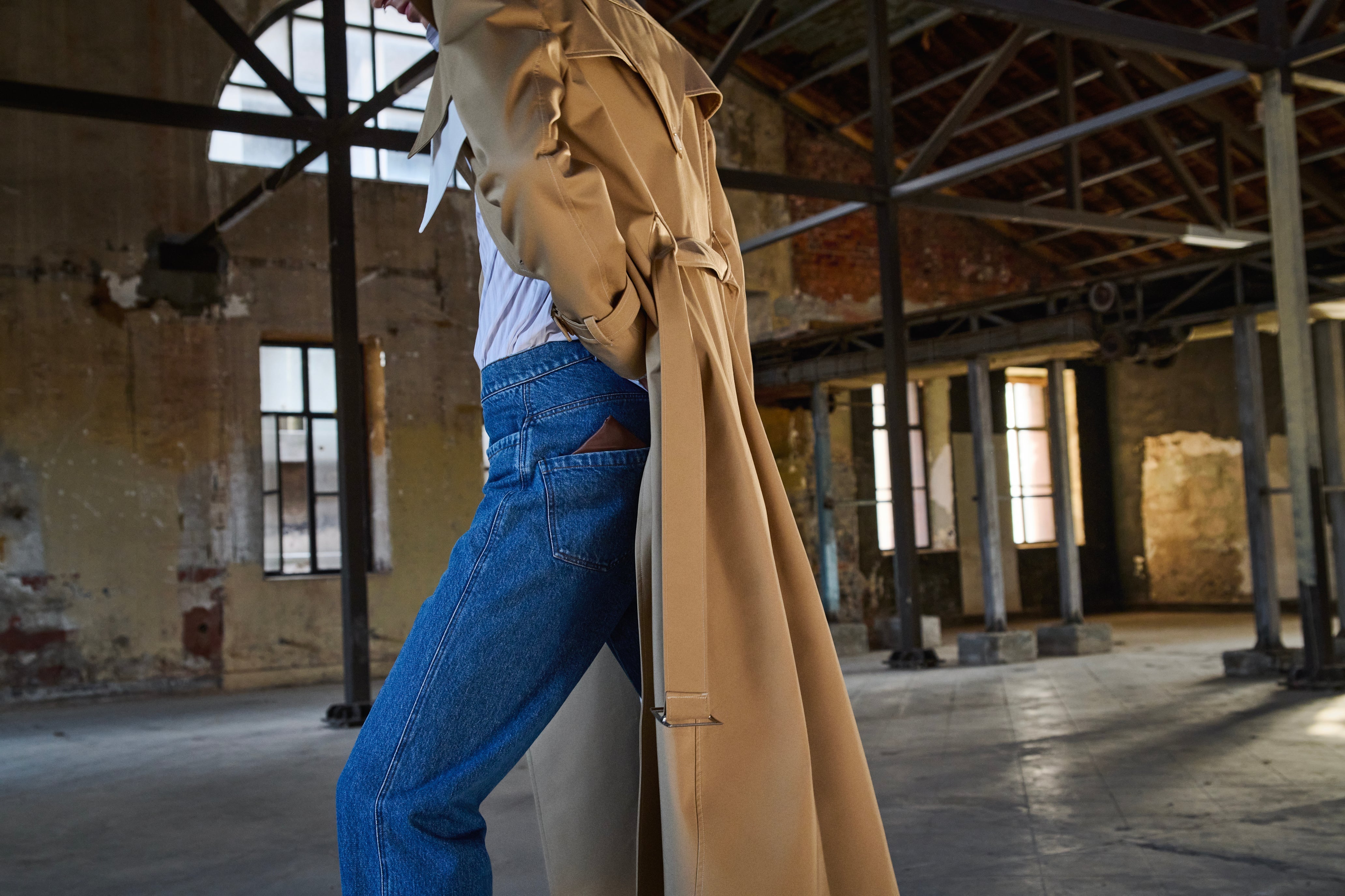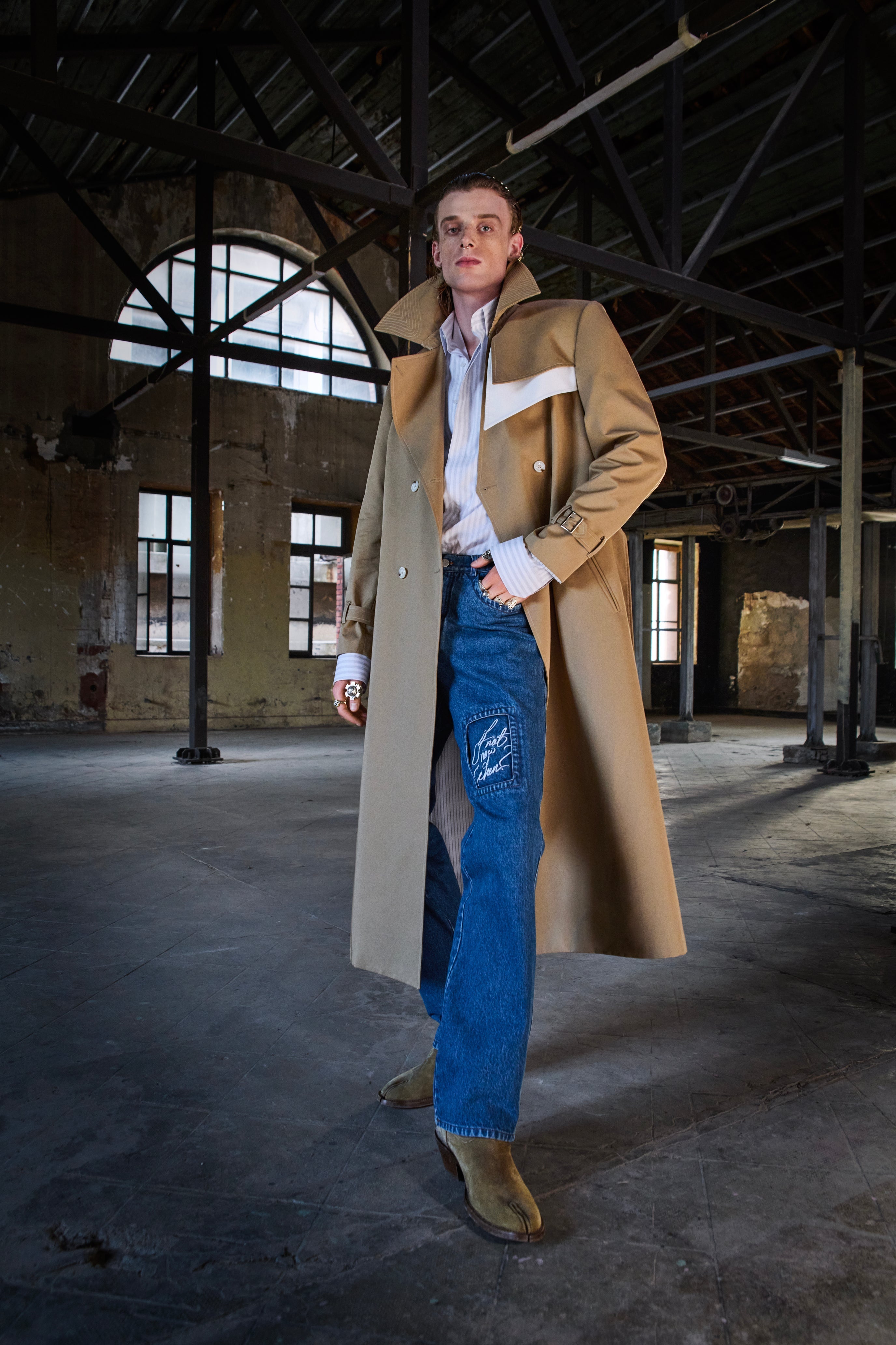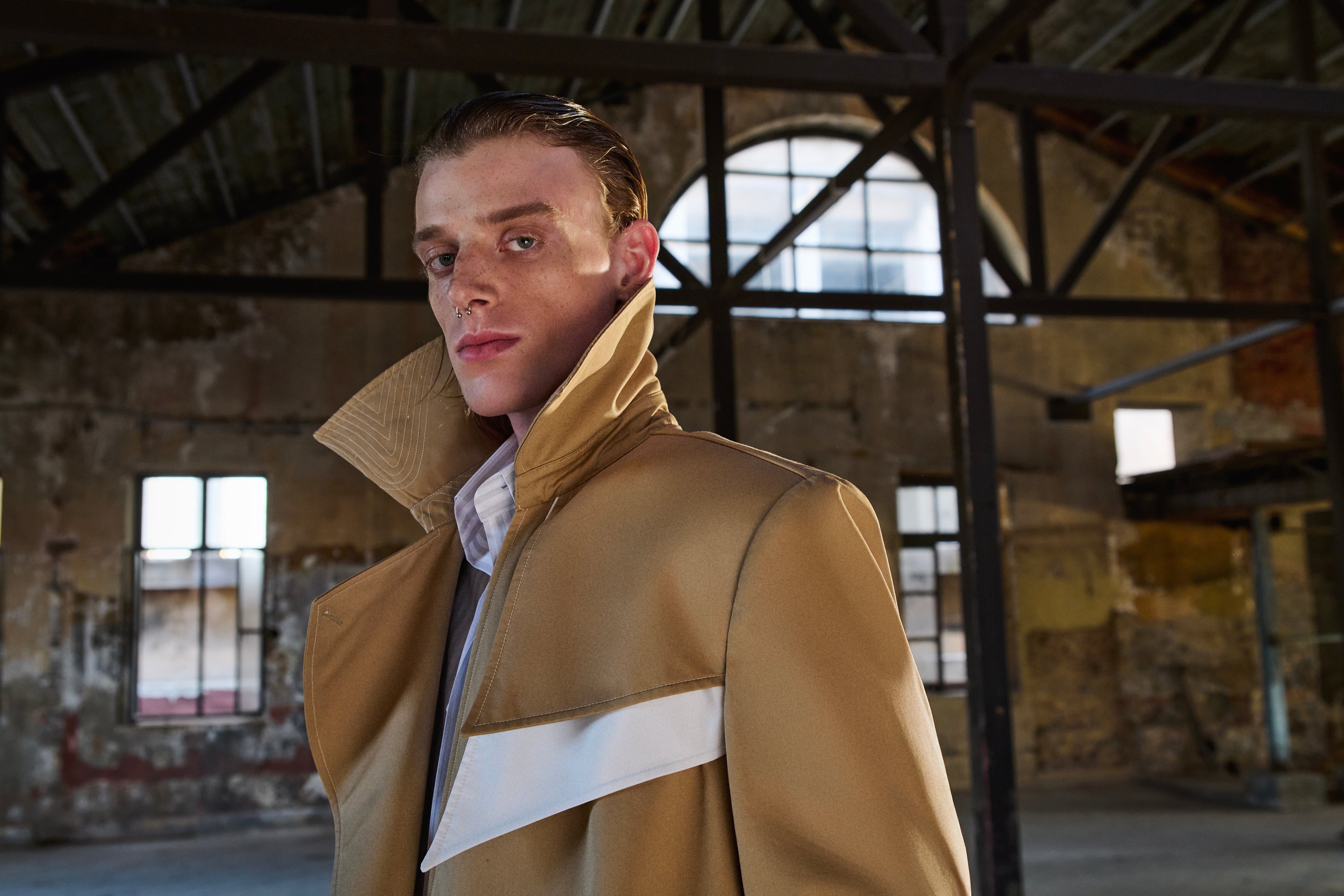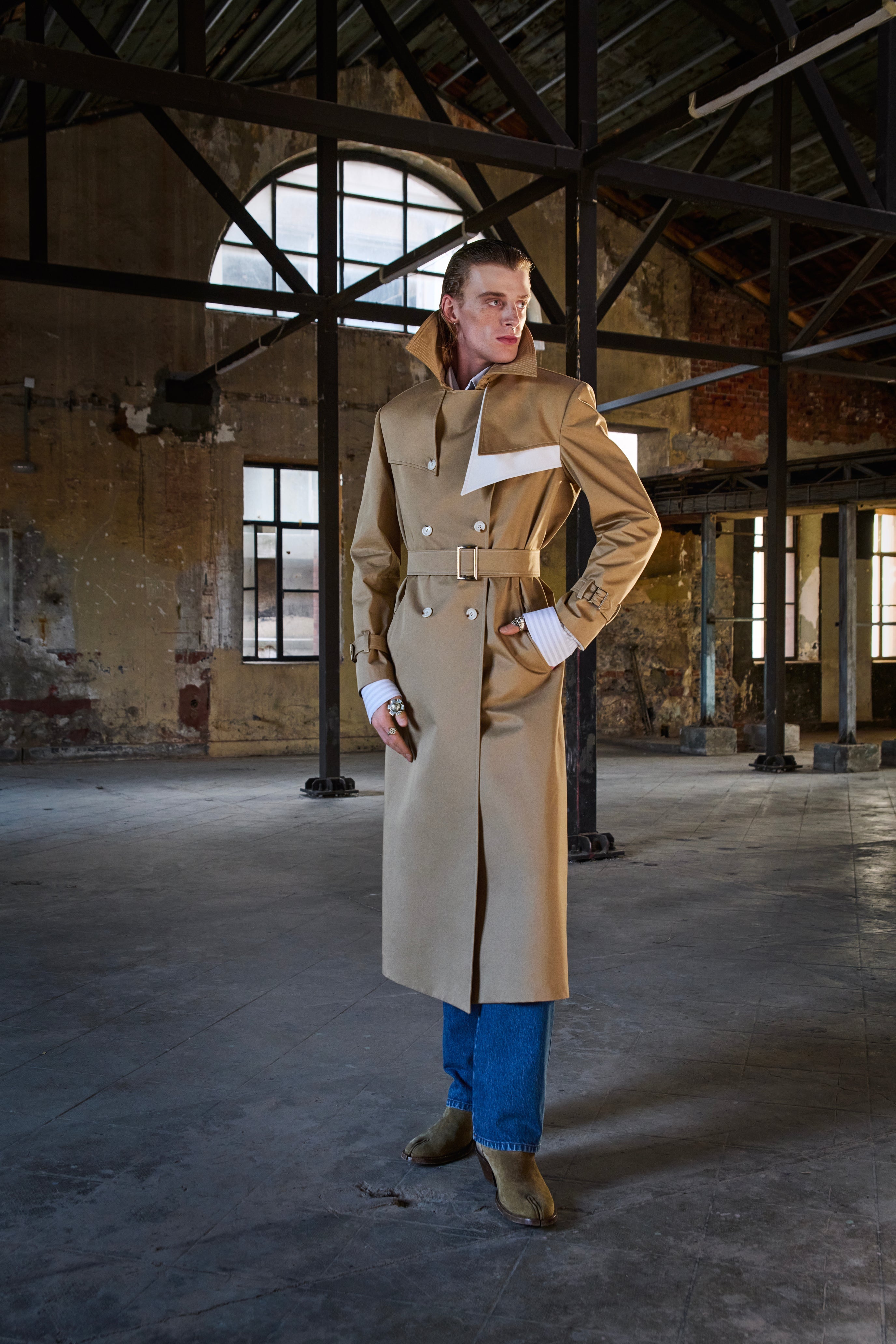 Men water proof cotton twill densely woven Beige Gabardin long Trench Coat.