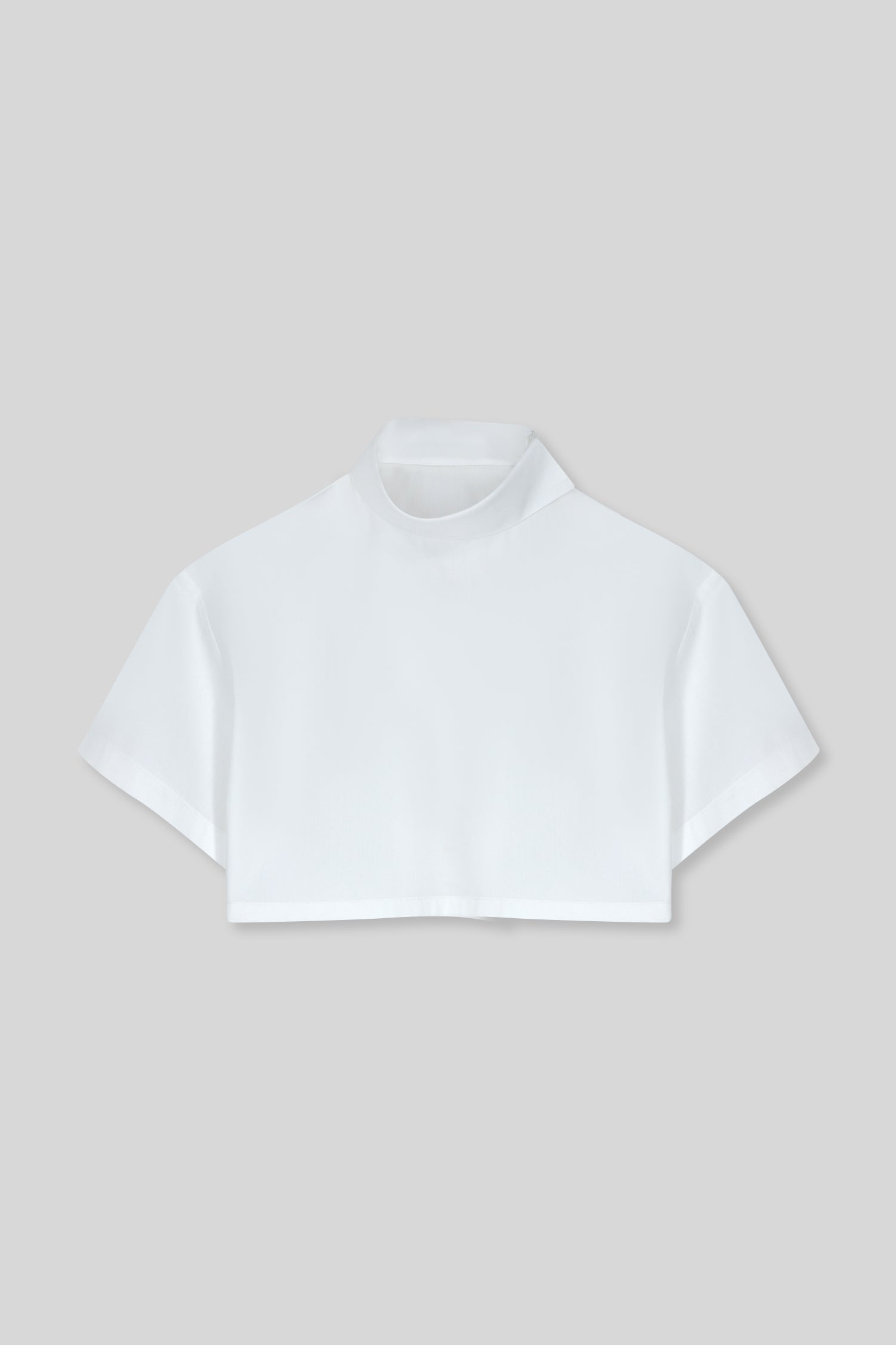 Finely Tailored Poplin cropped White shirt, short sleeved.