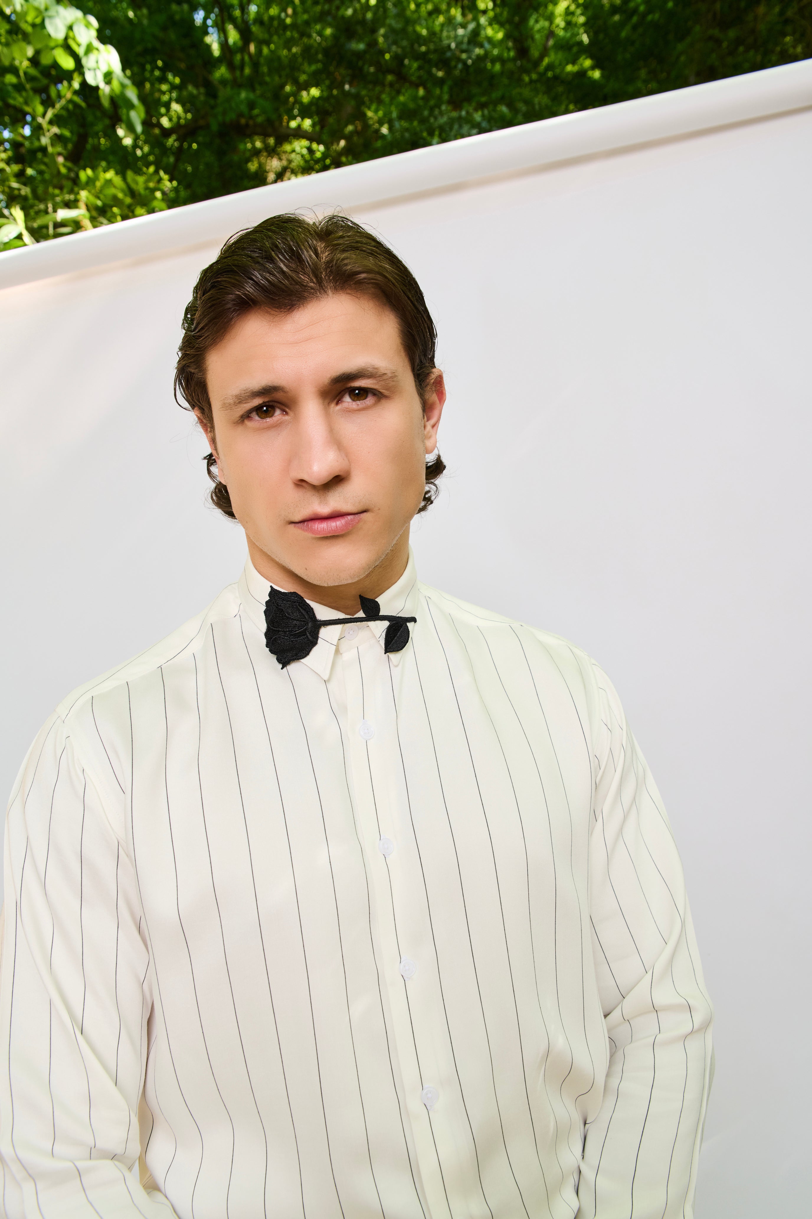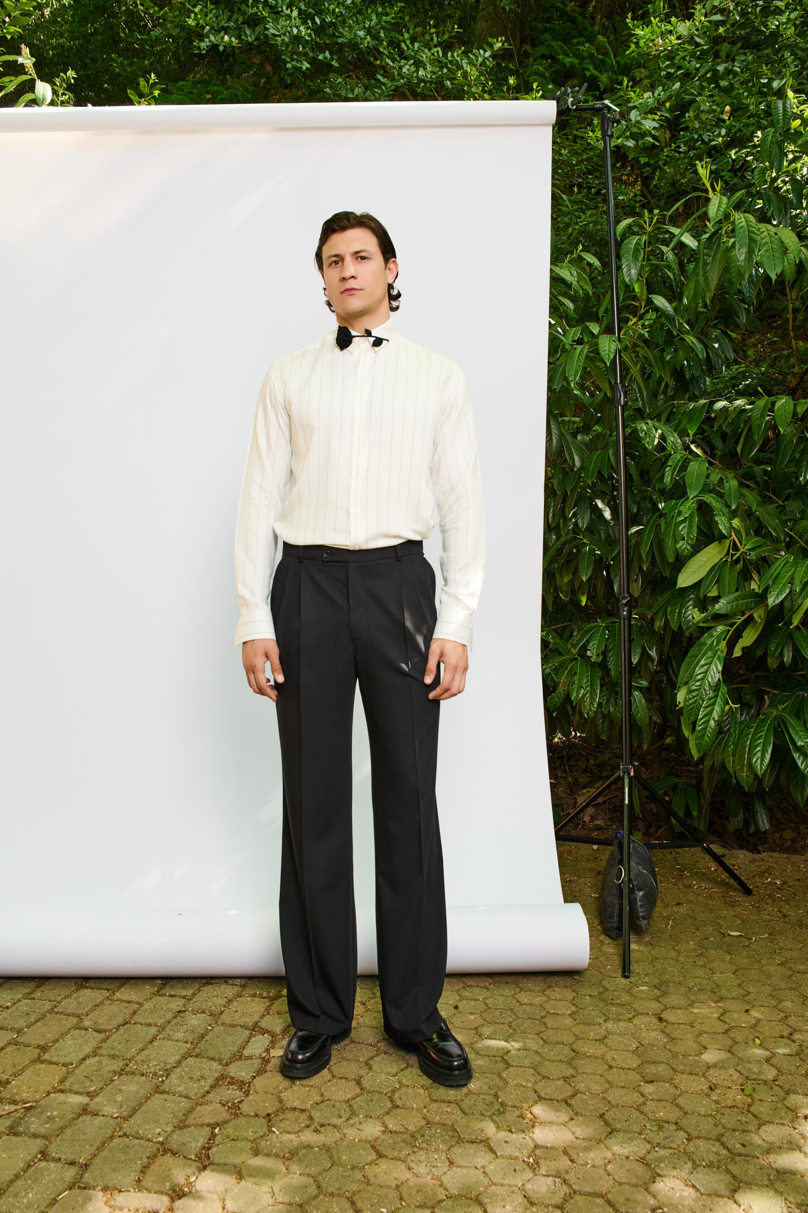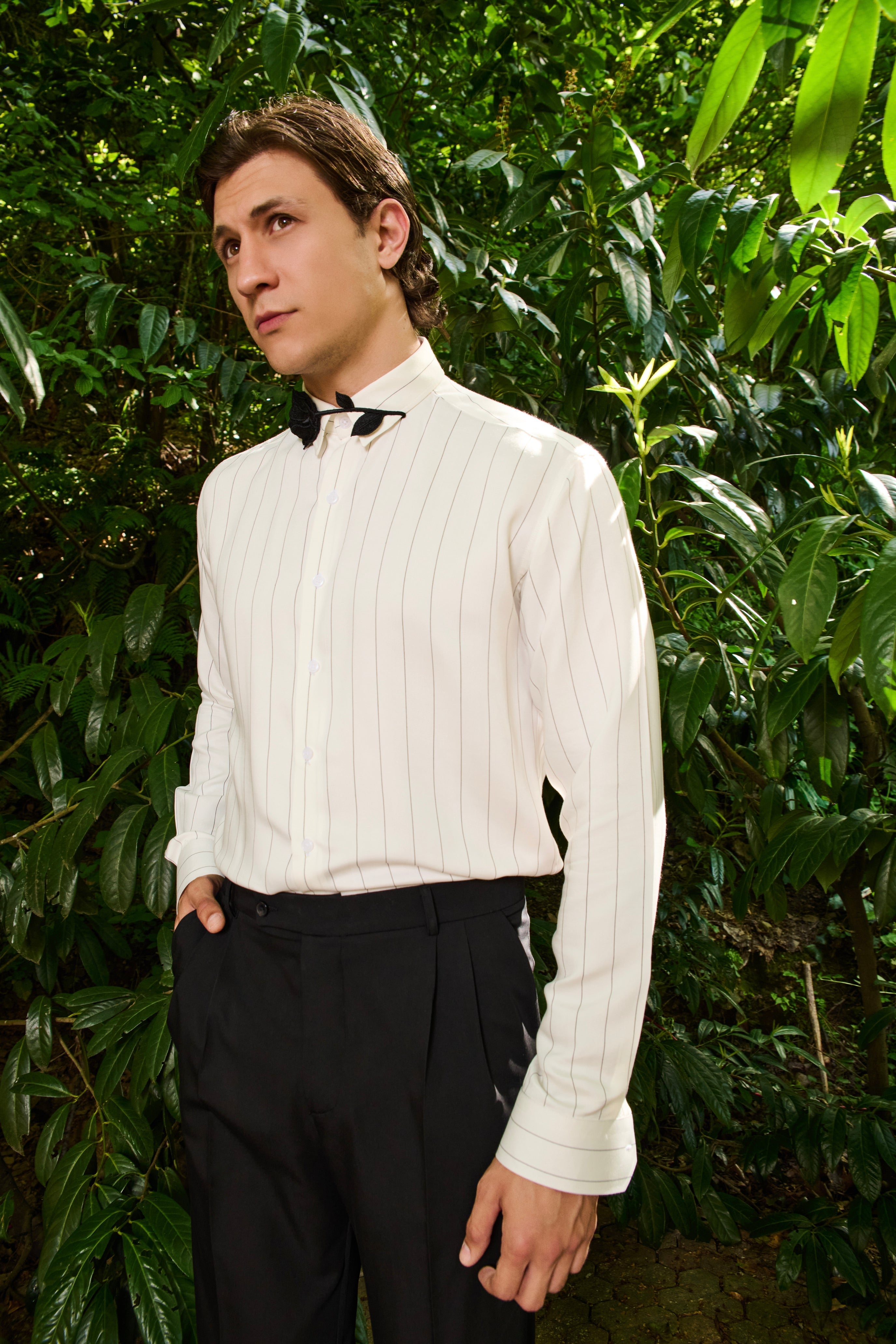 Viscos fabric regular fit shirt embedded with KKoncept specıal Black rose embroidery tailored on the collars.