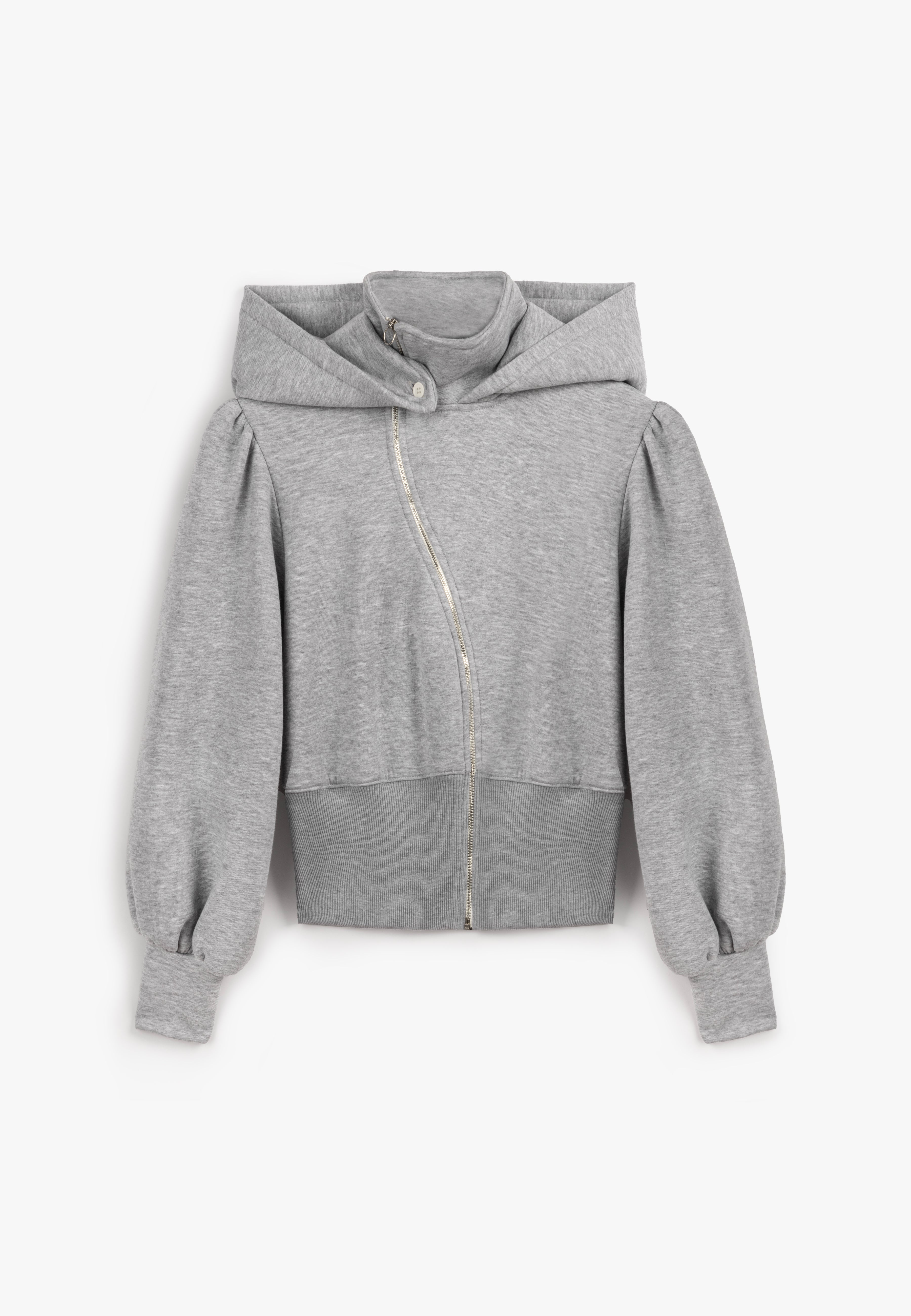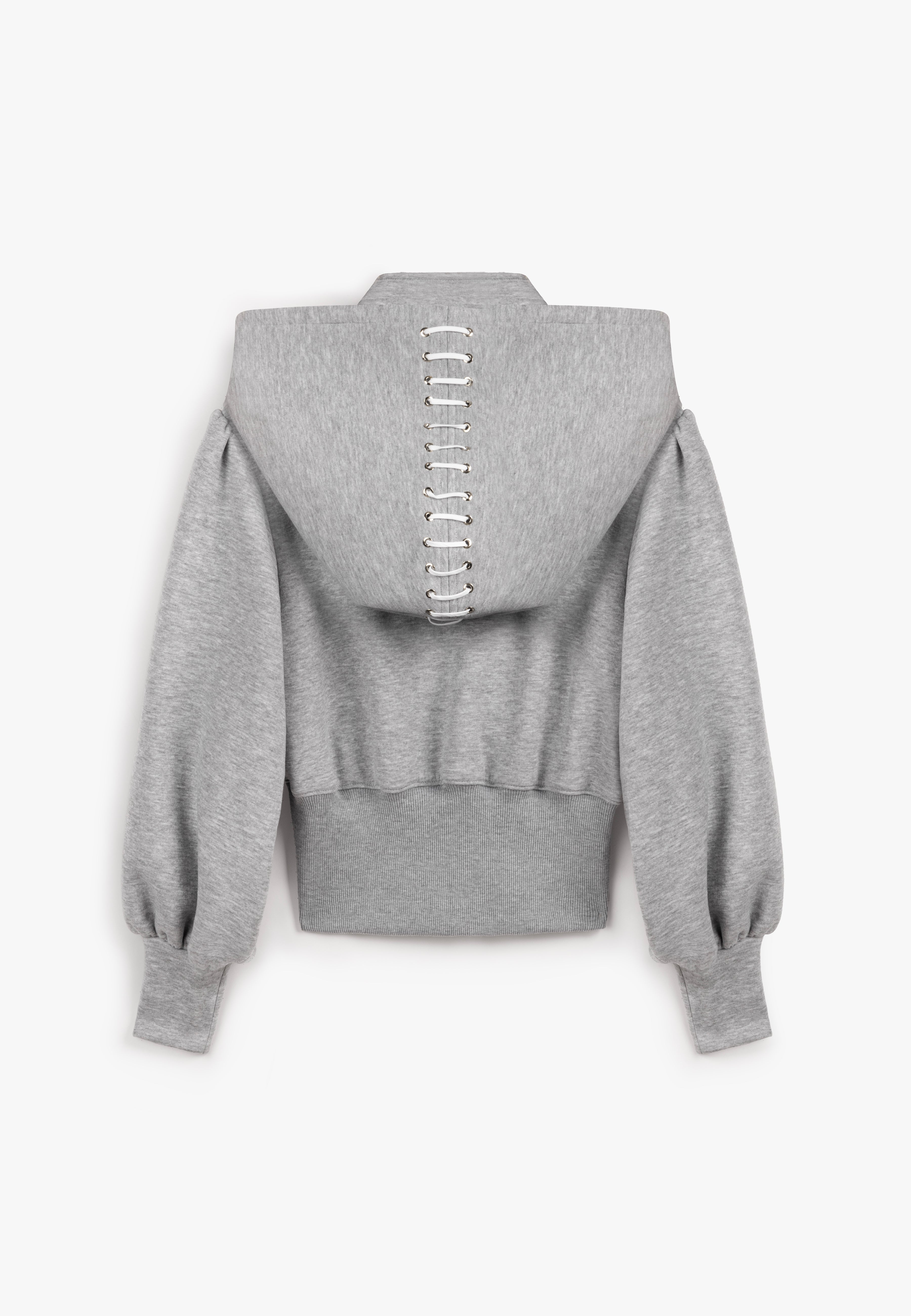 An off side zippered hoodi, short and tight on the waist detailed with a KKoncept classic metal spade.